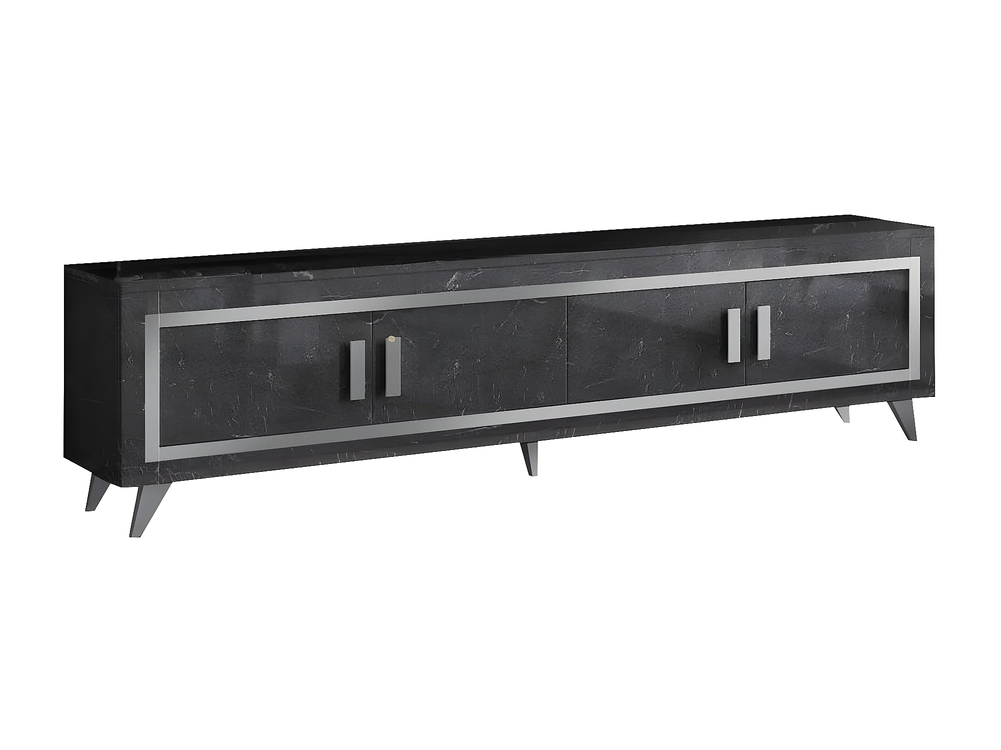 GUEDA - Ensemble Salon Effet Marbre Anthracite Meuble TV 4 Portes + Table Basse
