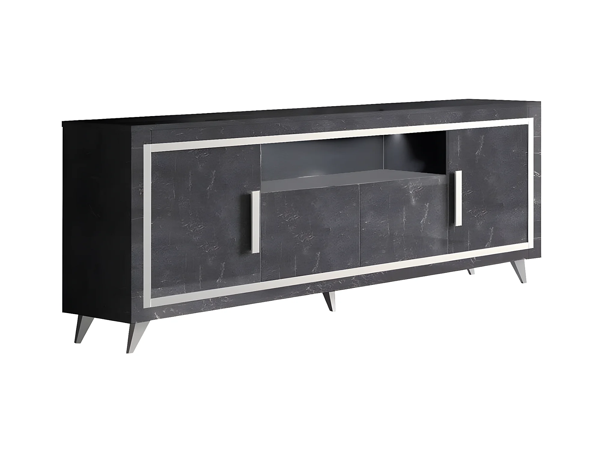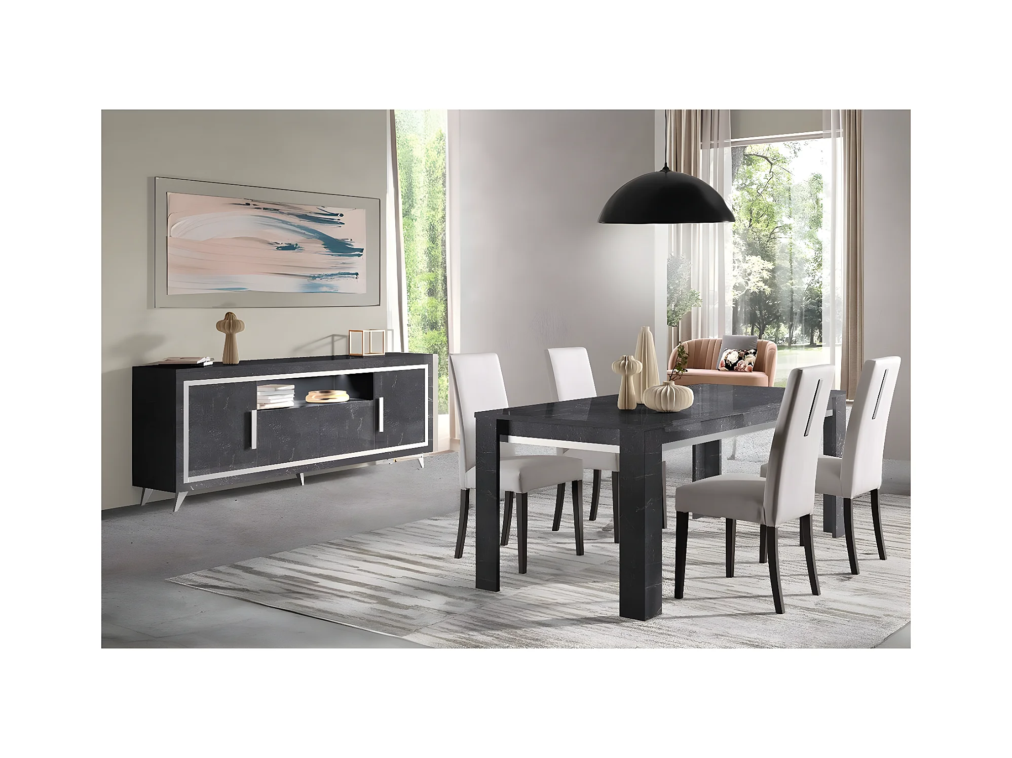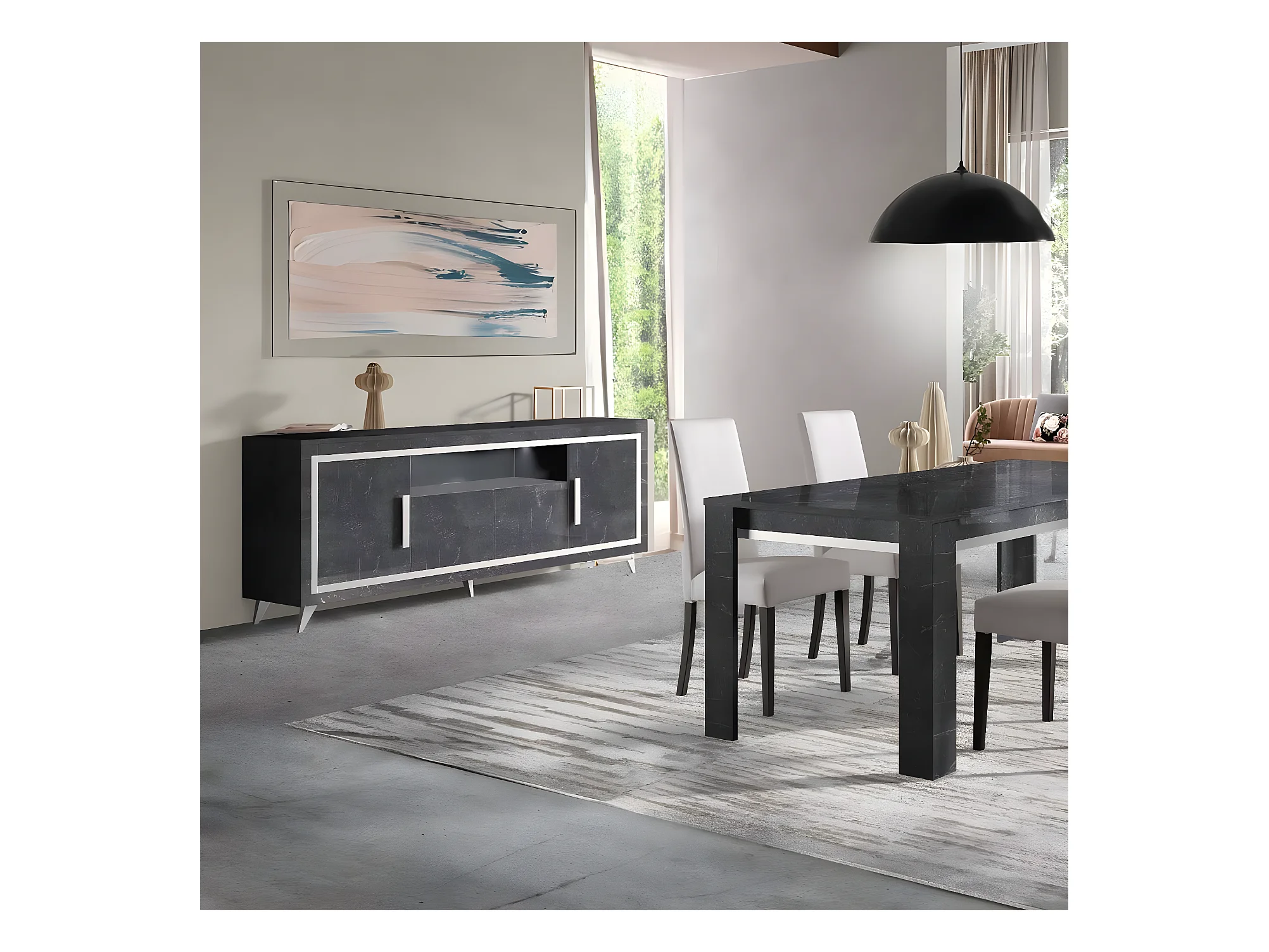 GUEDA - Ensemble Séjour Effet Marbre Anthracite Table 160cm + Buffet avec Leds