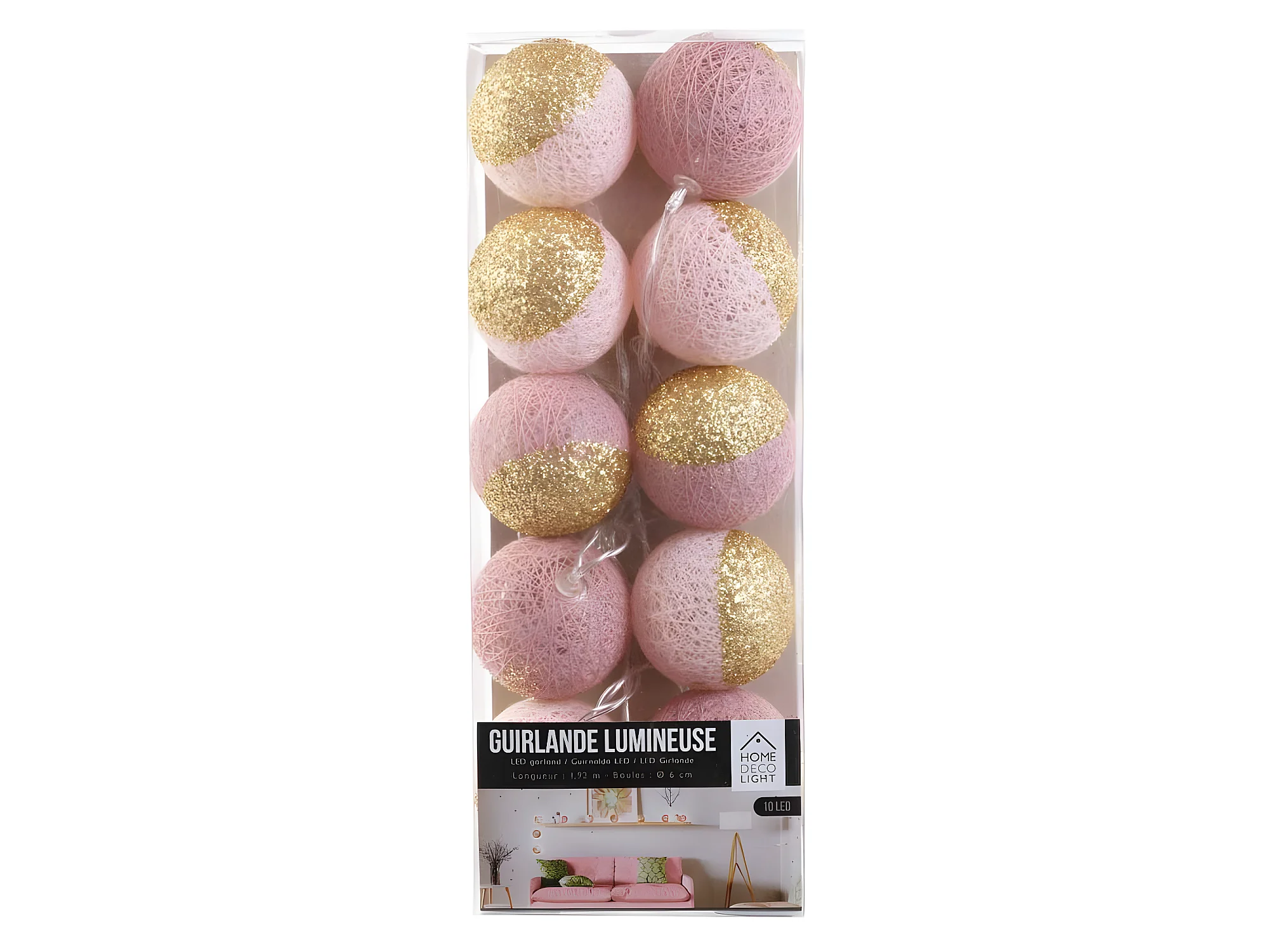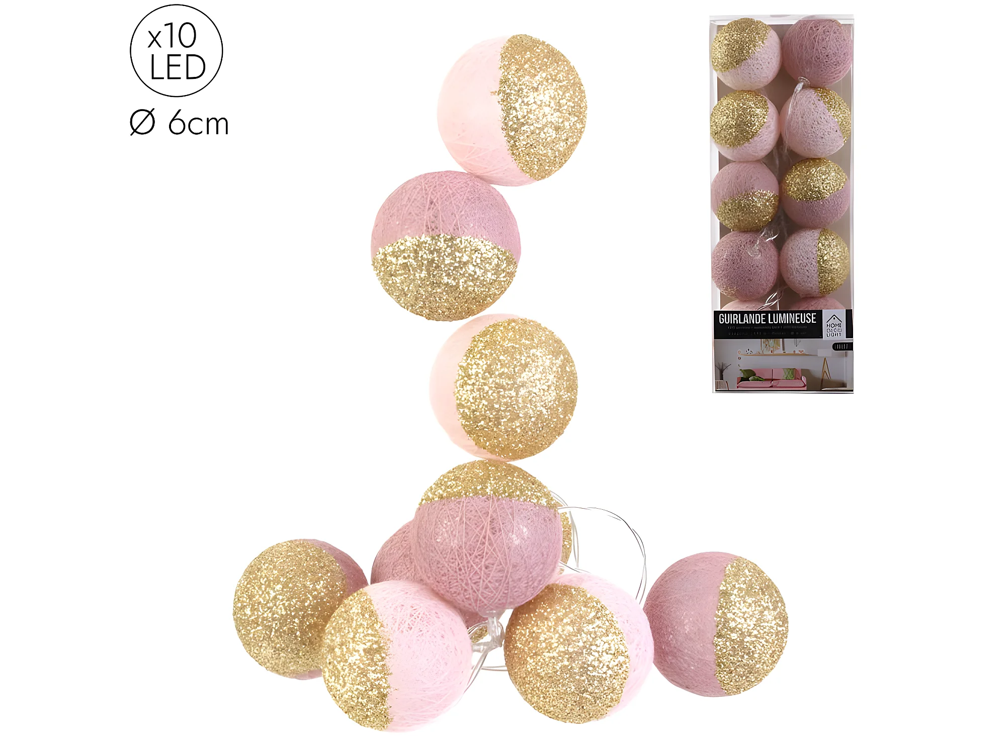 Guirlande Lumineuse à Led "10 Boules" 192cm Rose & Or