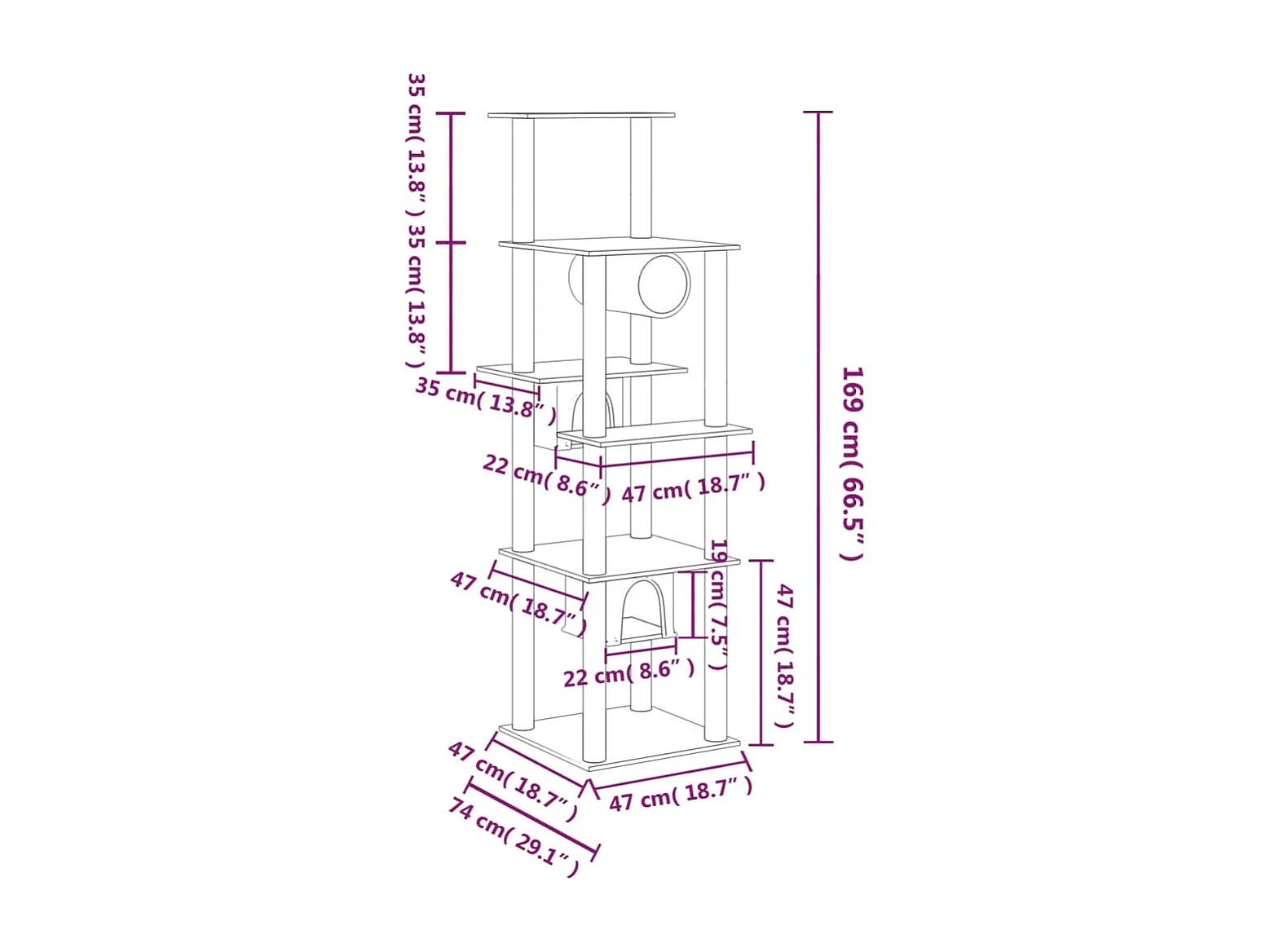 Grimhel Arbre à chat avec griffoirs en sisal Crème 166 cm