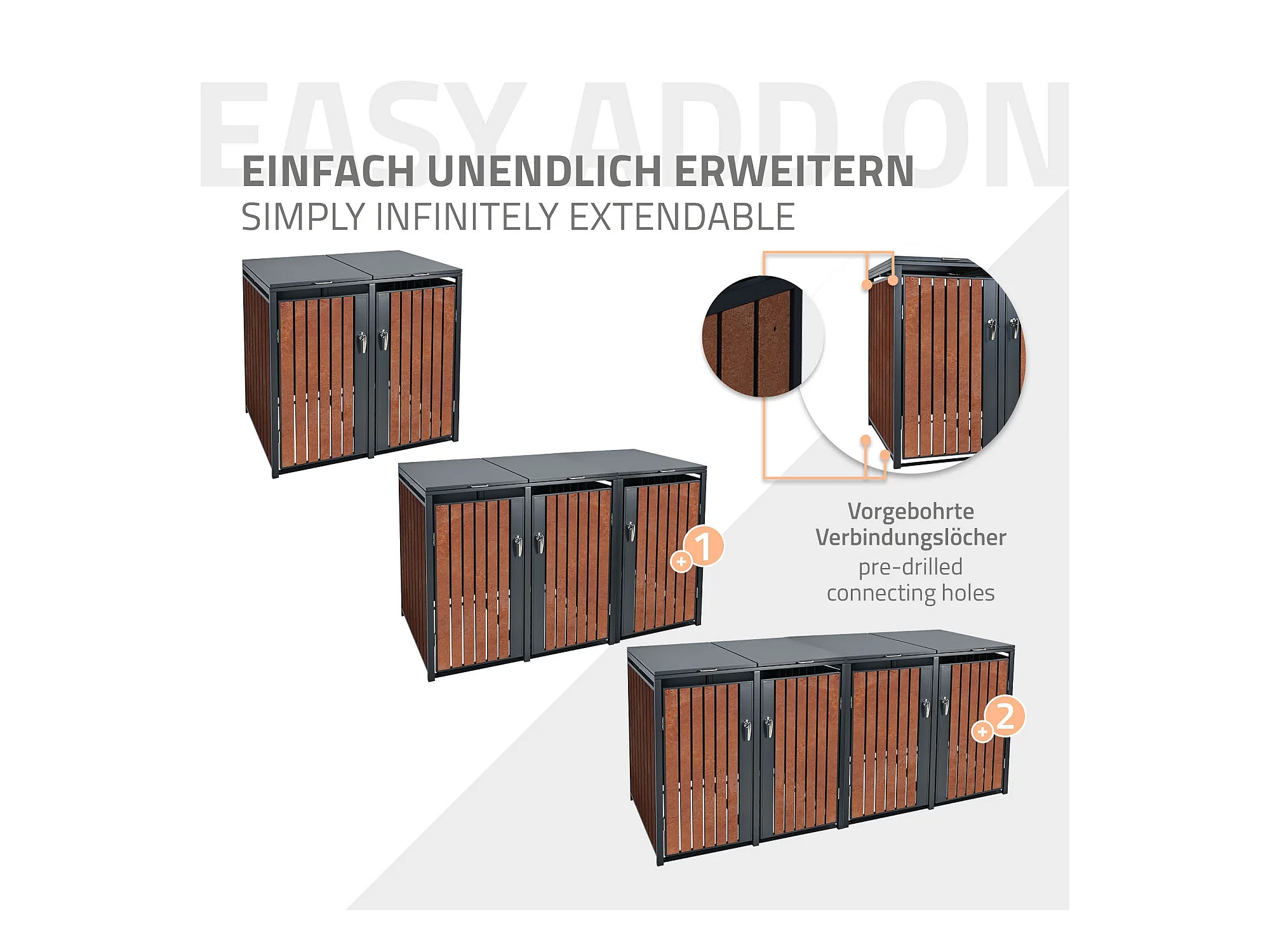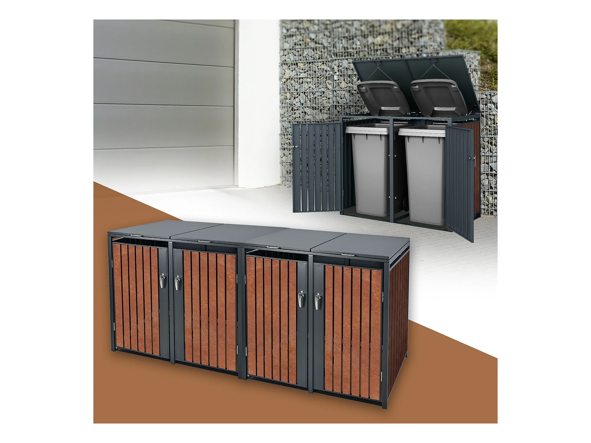 Abri pour 4 poubelles 264x80x116,3 cm capacité de 60L à 240L anthracite/aspect rouillé acier couvercle rabattable/4 portes résistant aux intempéries