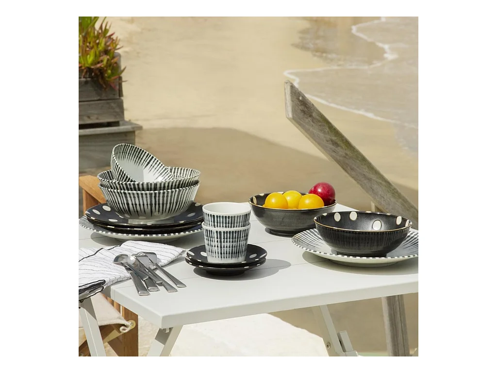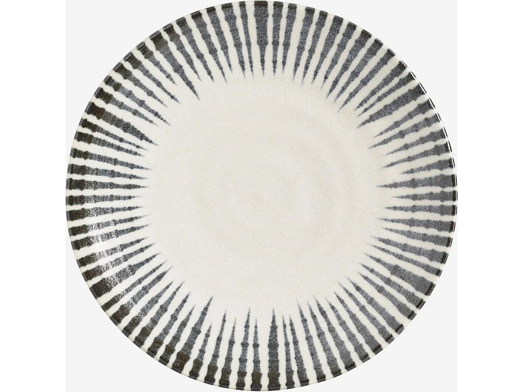 Habitat - Assiette plate en porcelaine - 26 cm - Lignes bleues - Pinako