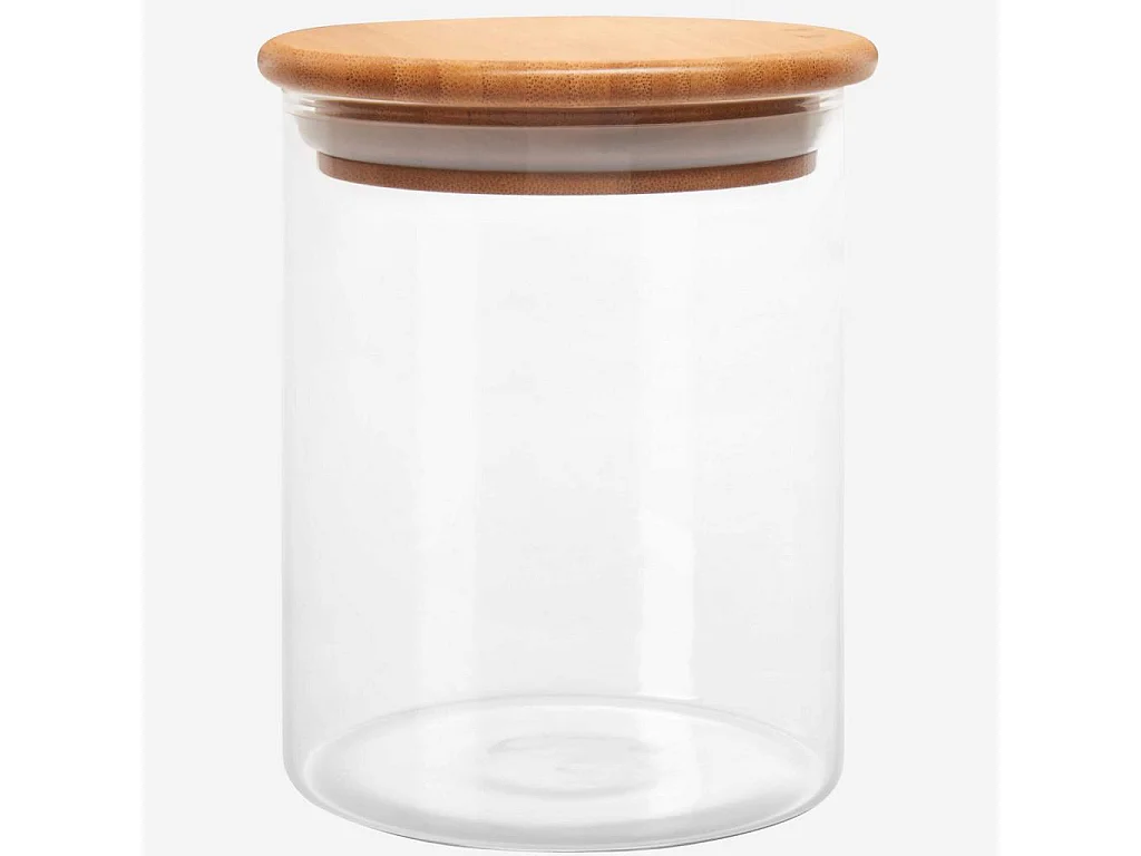 Bocal Verre Couvercle Acacia H17cm Transparent, Marron
