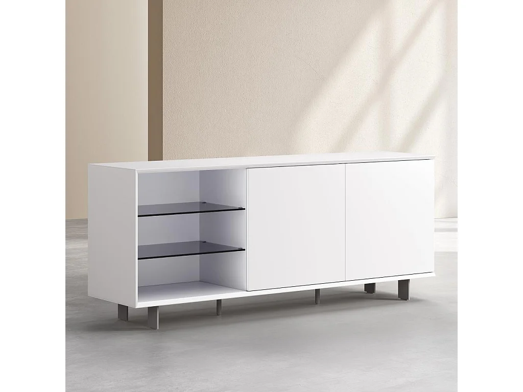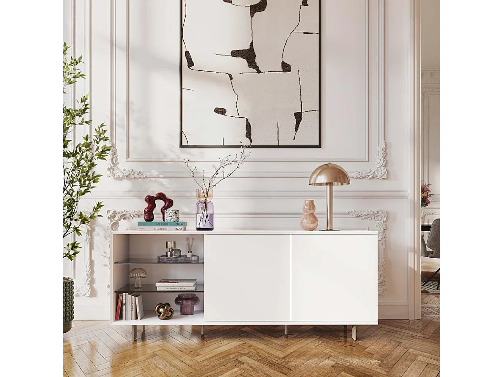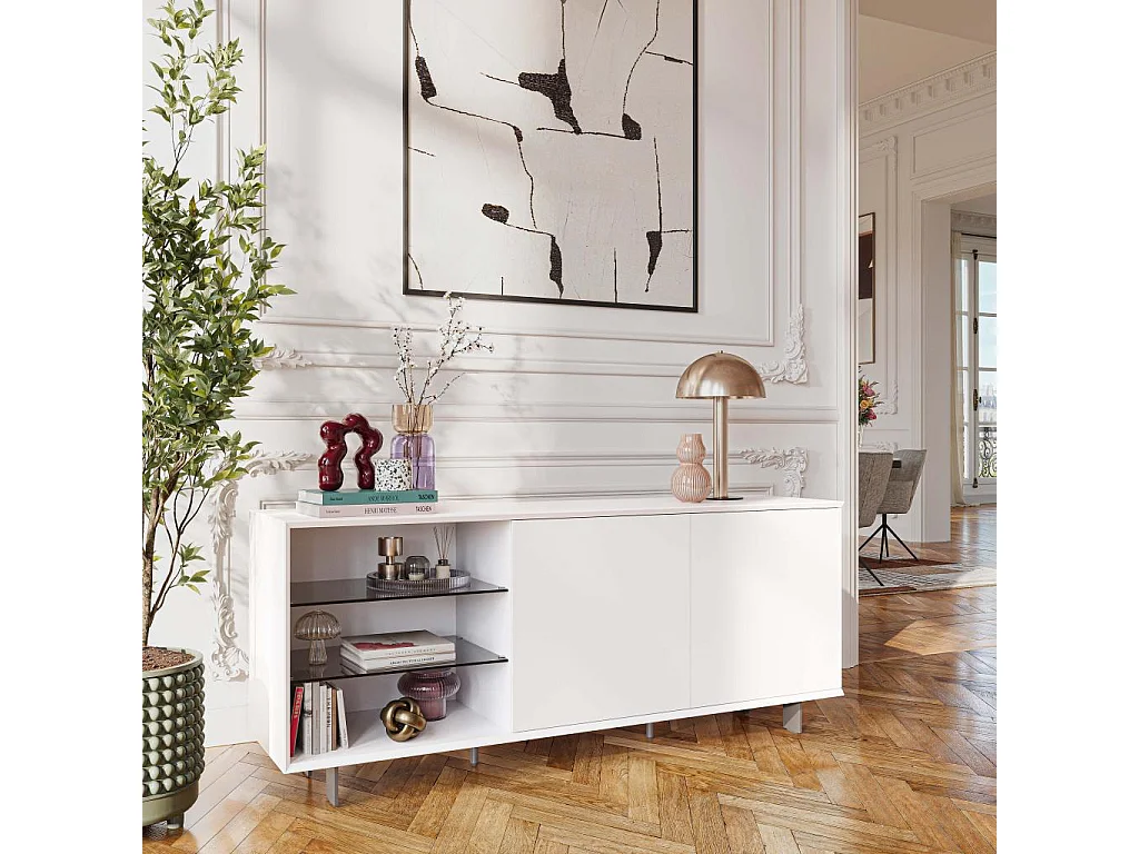 Habitat - Buffet bas 2 portes et pieds en métal - Blanc polaire - Agnes