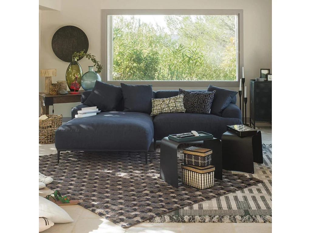 Habitat - Canapé d'angle gauche en lin garni de plumes - Bleu - Ottone