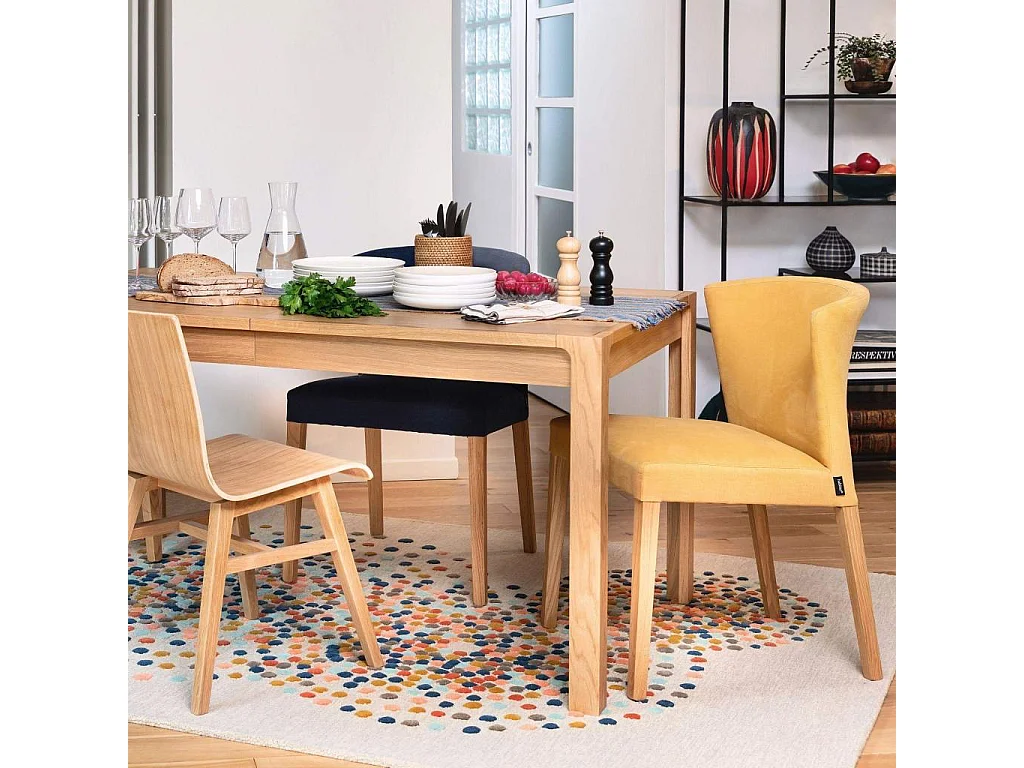 Habitat - Lot de 2 chaises en tissu - Jaune - Pieds chêne - Valentina