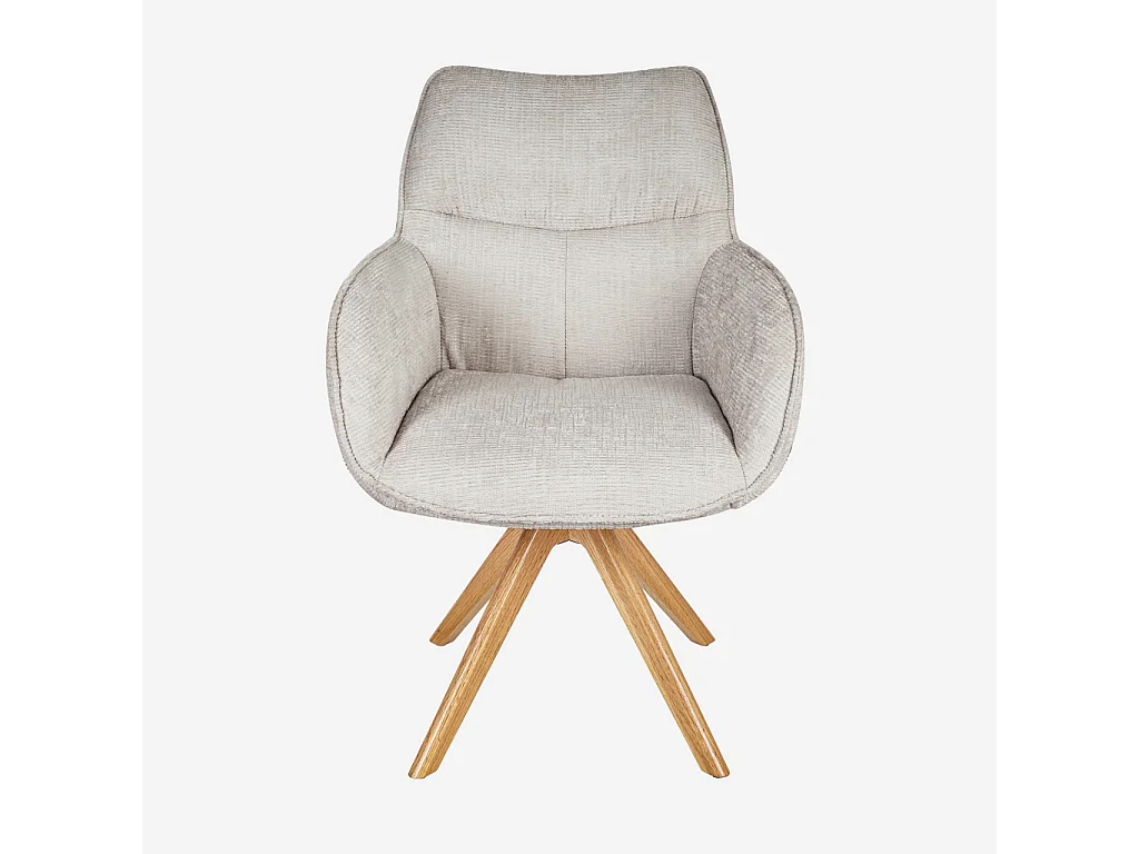 Habitat - Chaise pivotante en tissu chenille et chêne avec accoudoirs - Ivoire - Arzana