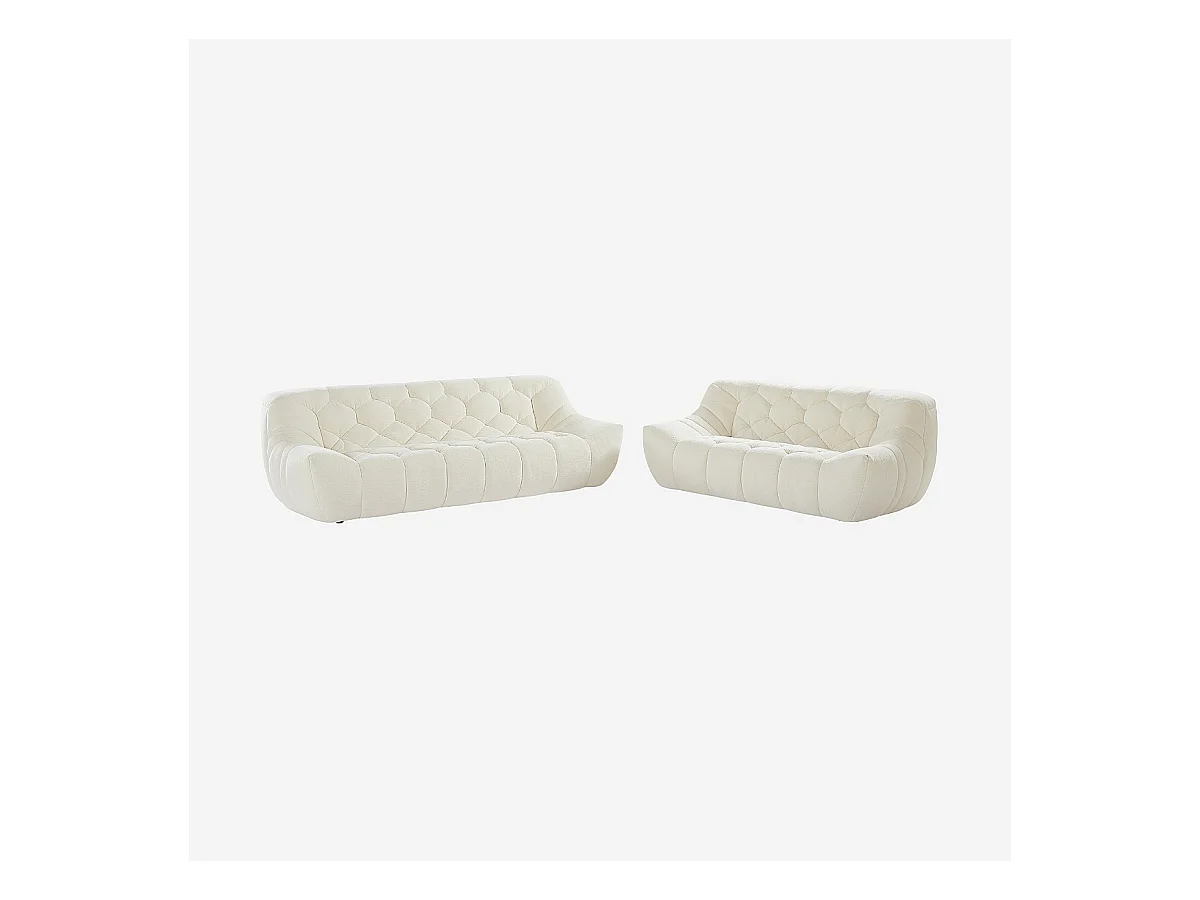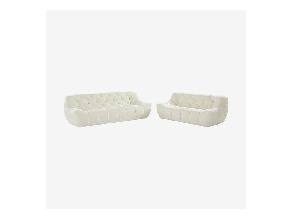 Habitat - Ensemble de canapés 3 et 2 places matelassés en tissu - Écru - Melfi