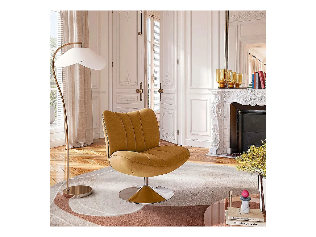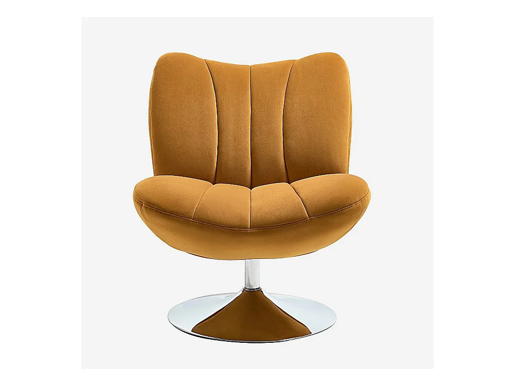 Habitat - Fauteuil pivotant matelassé en tissu et métal chromé - Miel - Andrew