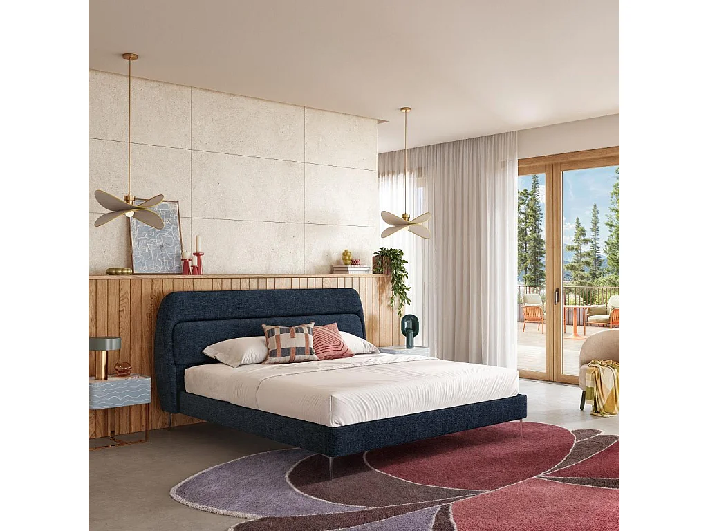 Habitat - Lit 160 x 200 cm en tissu - Bleu nuit - Izmir