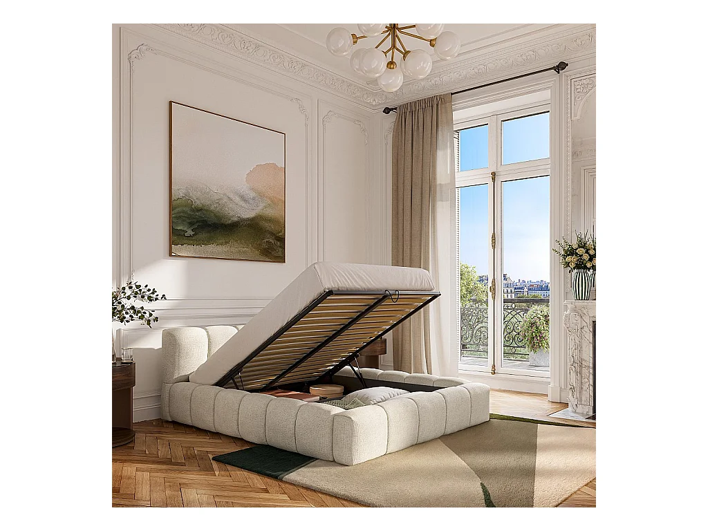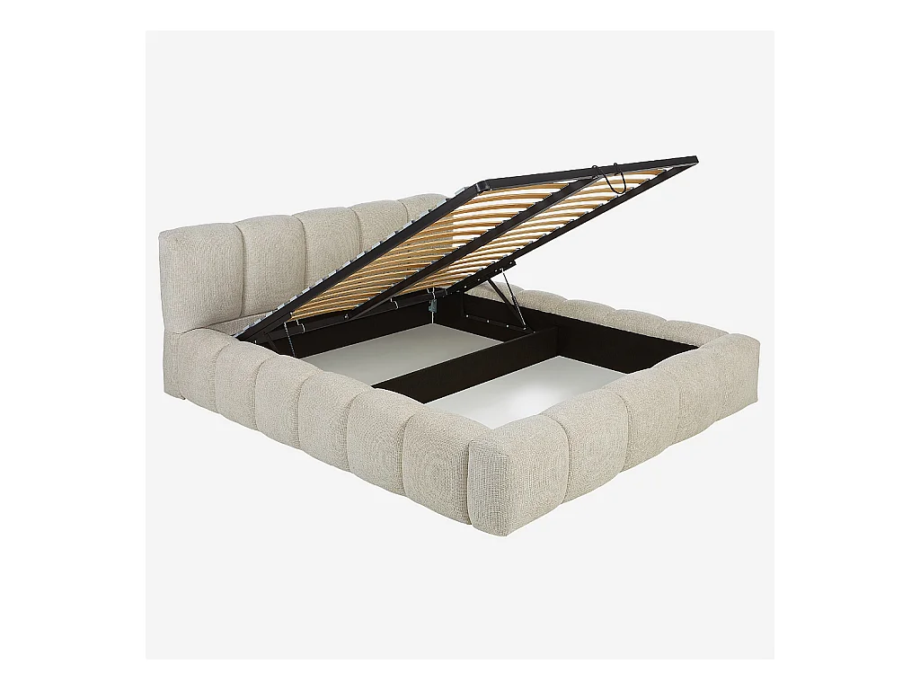 Habitat - Lit coffre 160 x 200 cm en tissu chenille - Crème - Setana