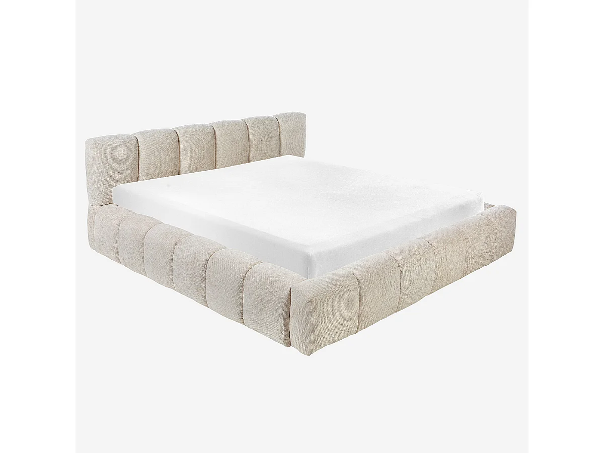 Habitat - Lit coffre 180 x 200 cm en tissu chenille - Crème - Setana