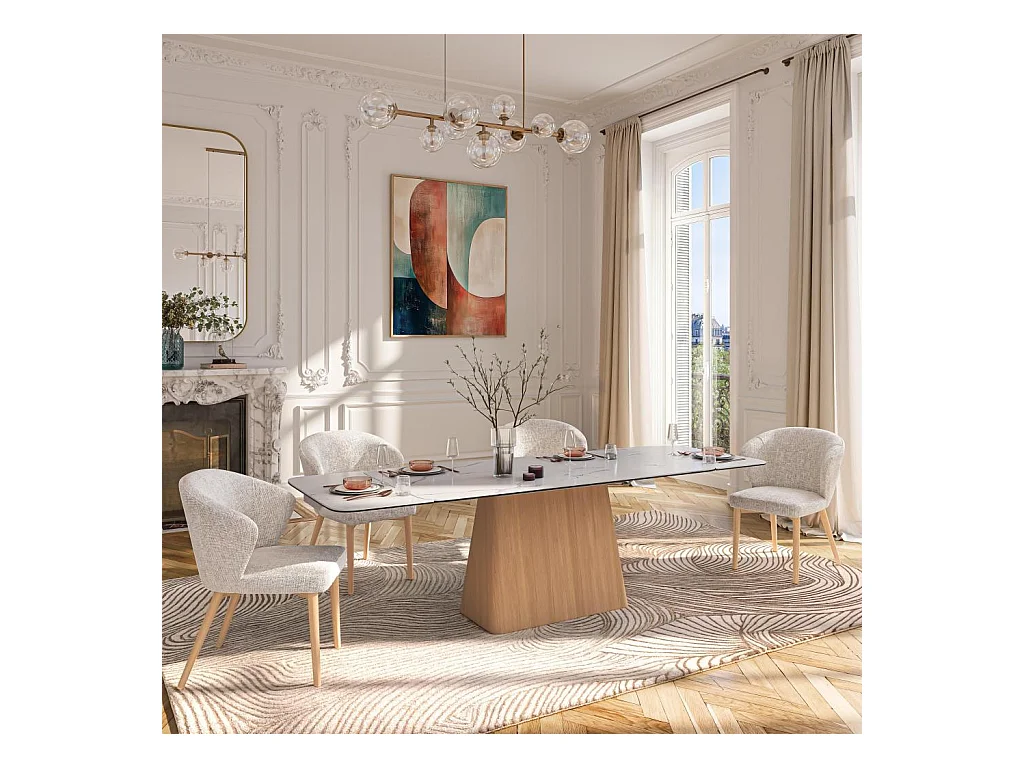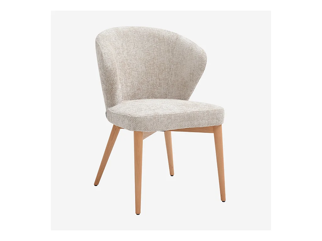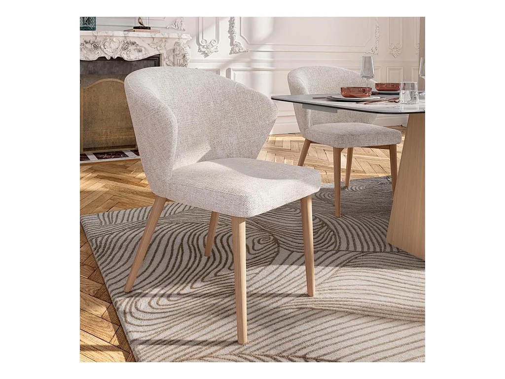 Habitat - Lot de 2 chaises en tissu chenille et bois massif couleur chêne - Crème - Luris