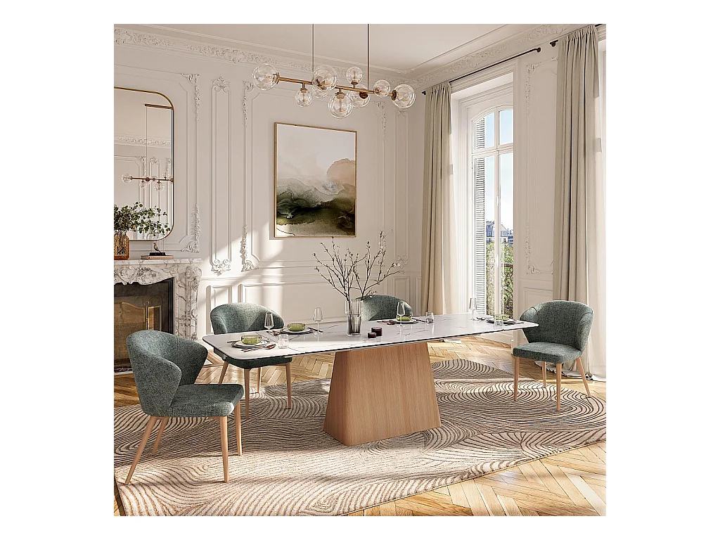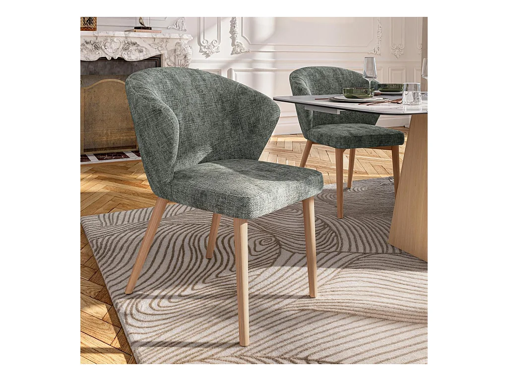 Habitat - Lot de 2 chaises en tissu chenille et bois massif couleur chêne - Vert sapin - Luris