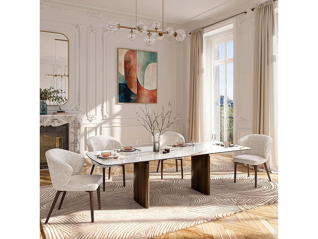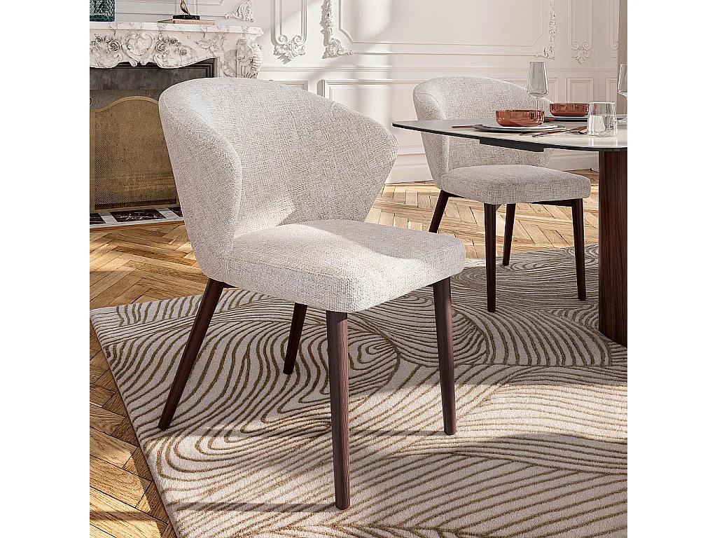 Habitat - Lot de 2 chaises en tissu chenille et bois massif couleur noyer - Crème - Luris
