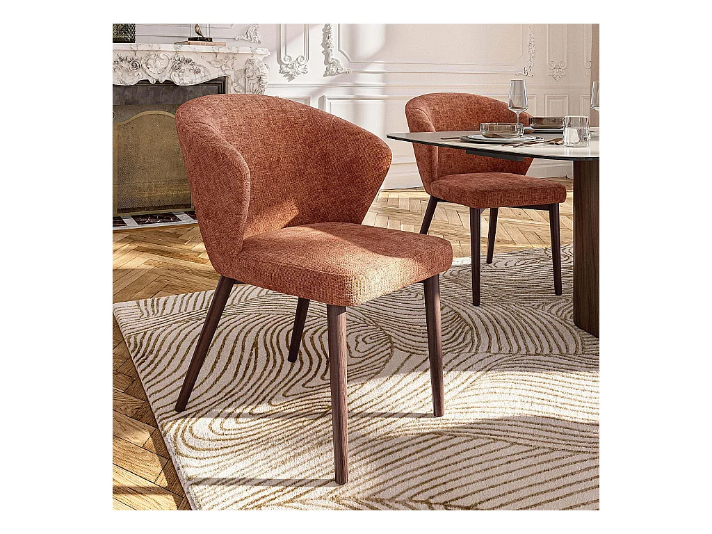 Habitat - Lot de 2 chaises en tissu chenille et bois massif couleur noyer - Terracotta - Luris