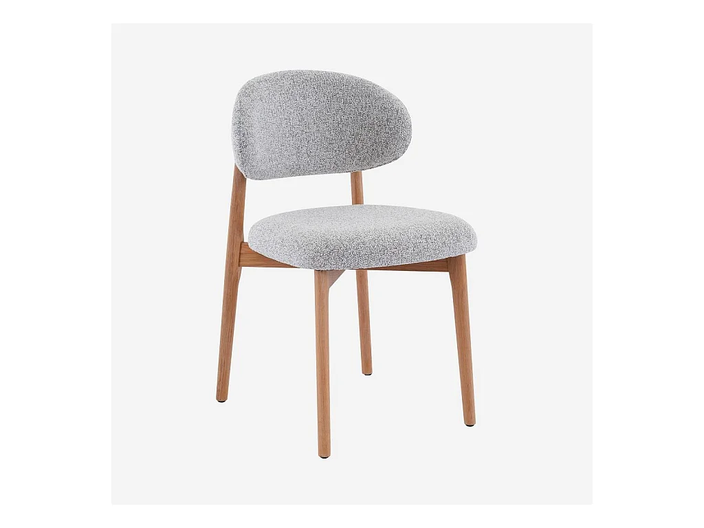 Habitat - Lot de 2 chaises en tissu texturé et chêne massif - Gris chiné - Sedino