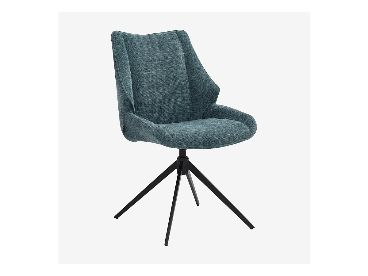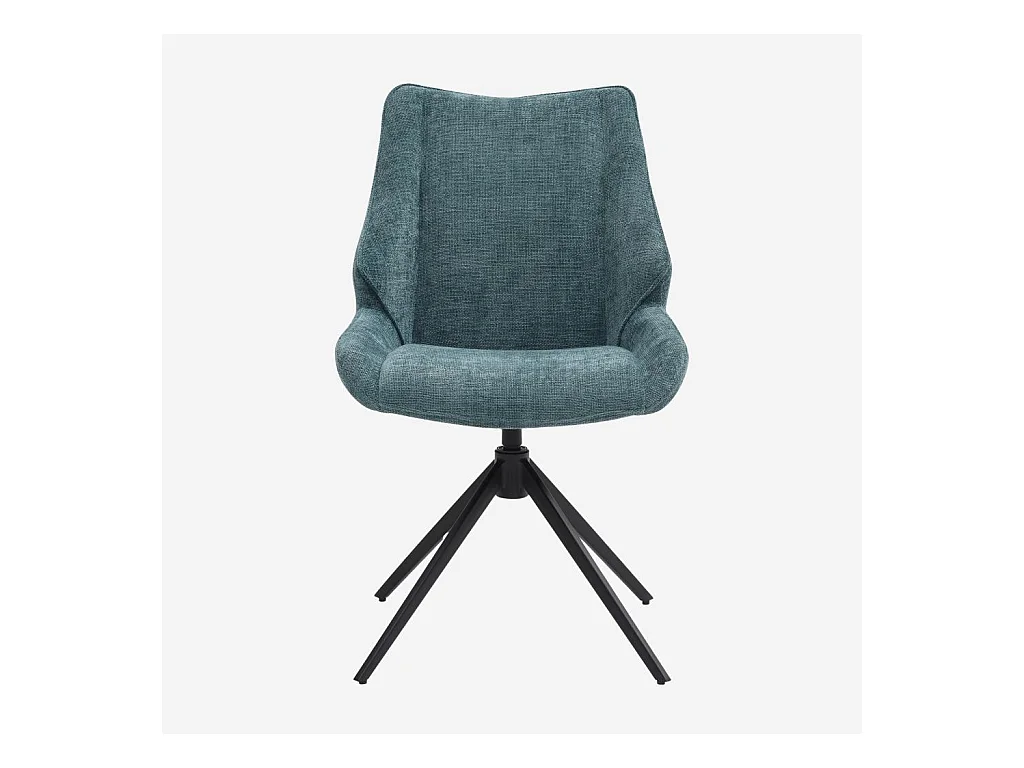 Habitat - Lot de 2 chaises pivotantes en tissu chenille et métal noir - Bleu canard - Osta