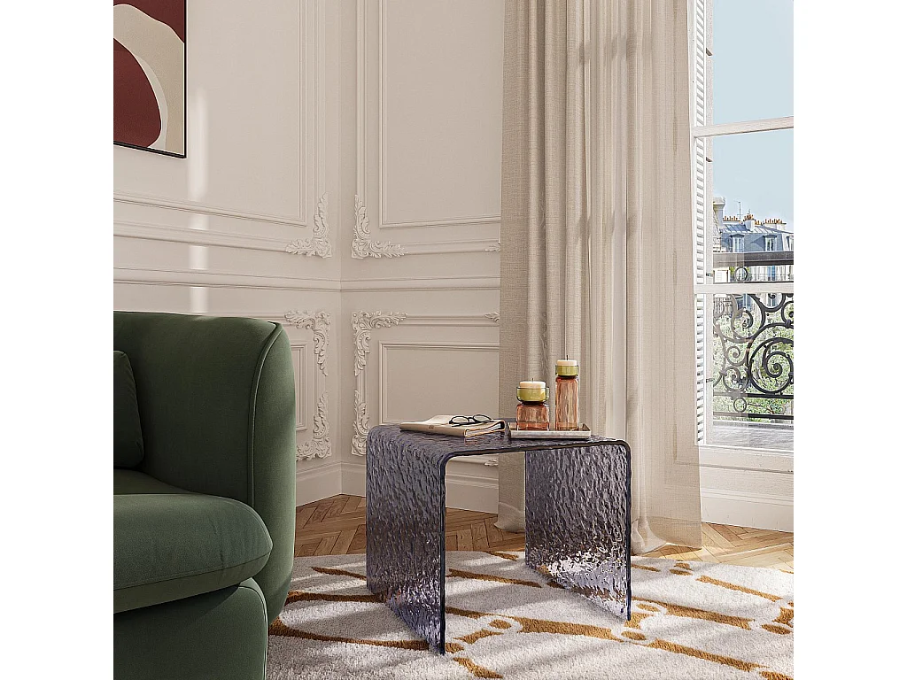 Habitat - Table d'appoint carrée en verre trempé bullé - Gris fumé - Izlana