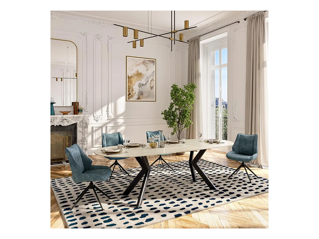 Habitat - Table ovale extensible en céramique effet travertin - Beige - Tibur
