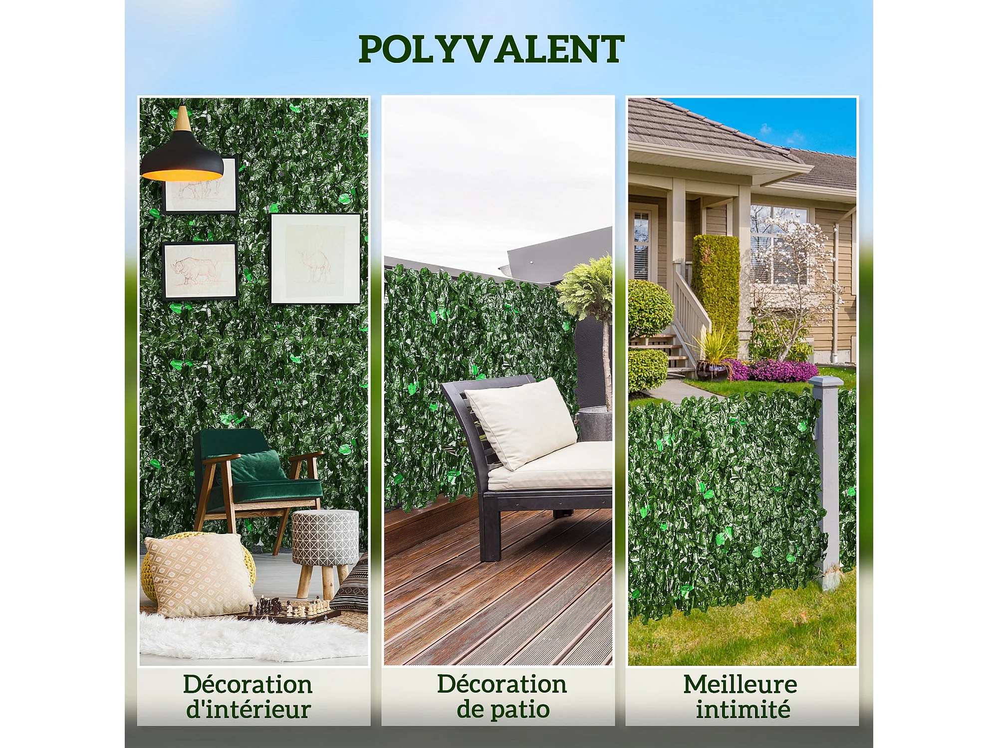 Haie artificielle lierre brise-vue rouleau dim. 3L x 1H m feuillage réaliste anti-UV vert