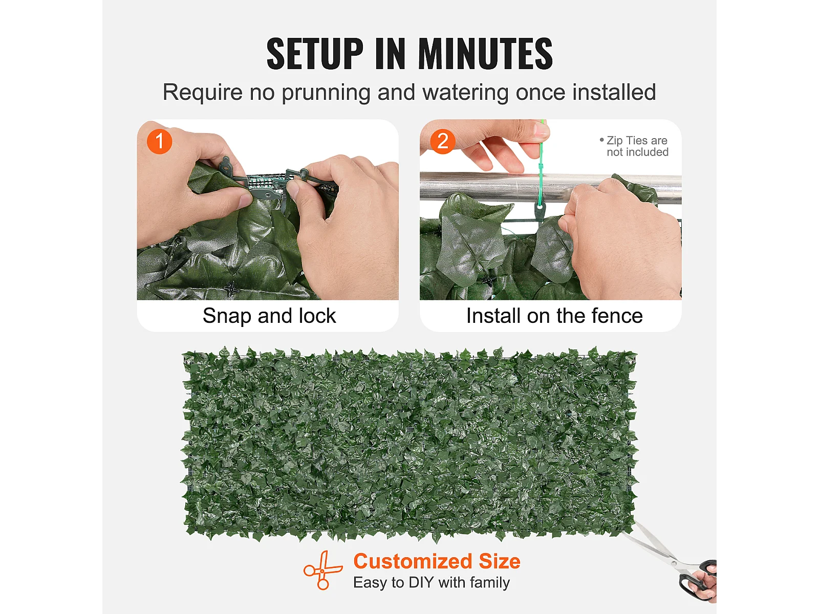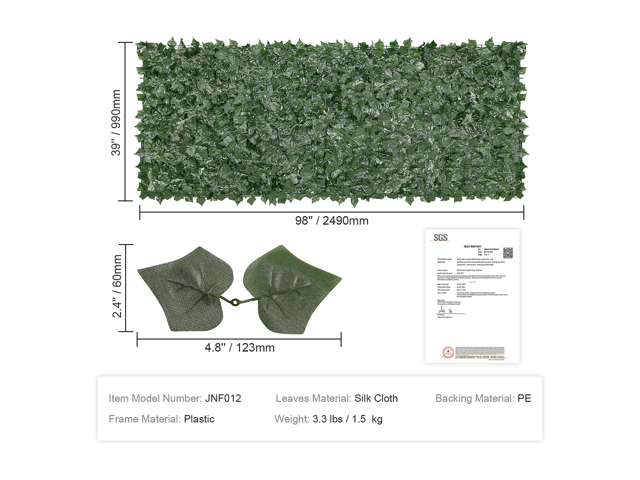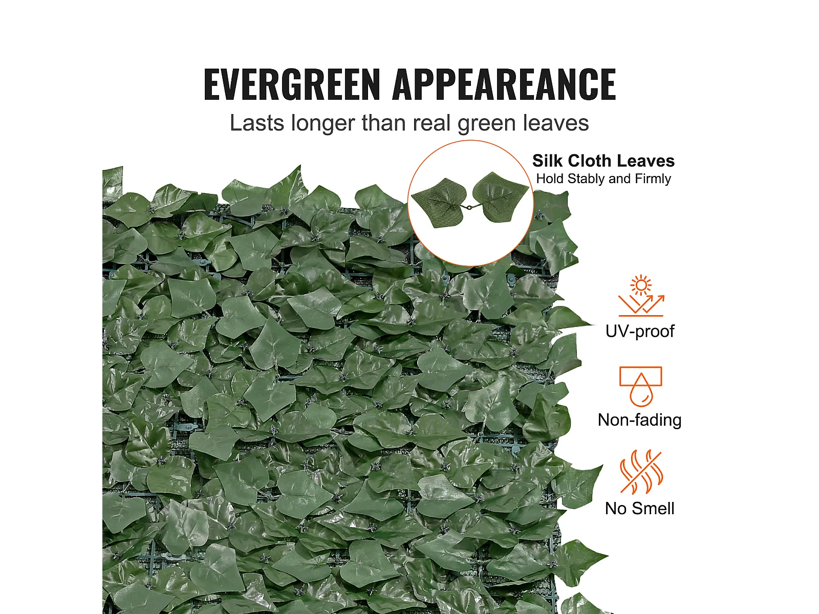 Haie Artificielle SucceBuy Clôture en Feuilles de Lierre Artificielles 99.06 x 248.92 cm avec Support en Tissu Maillé