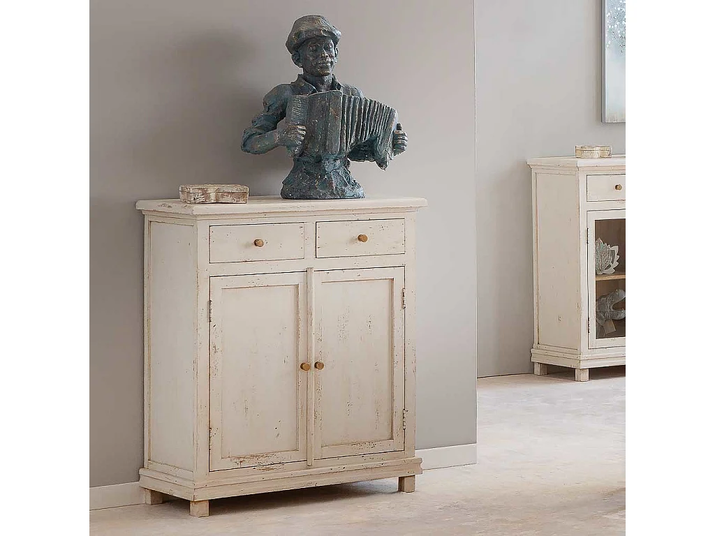 Hall en bois fini artisanal avec 2 portes et 2 tiroirs blancs 85x40x100