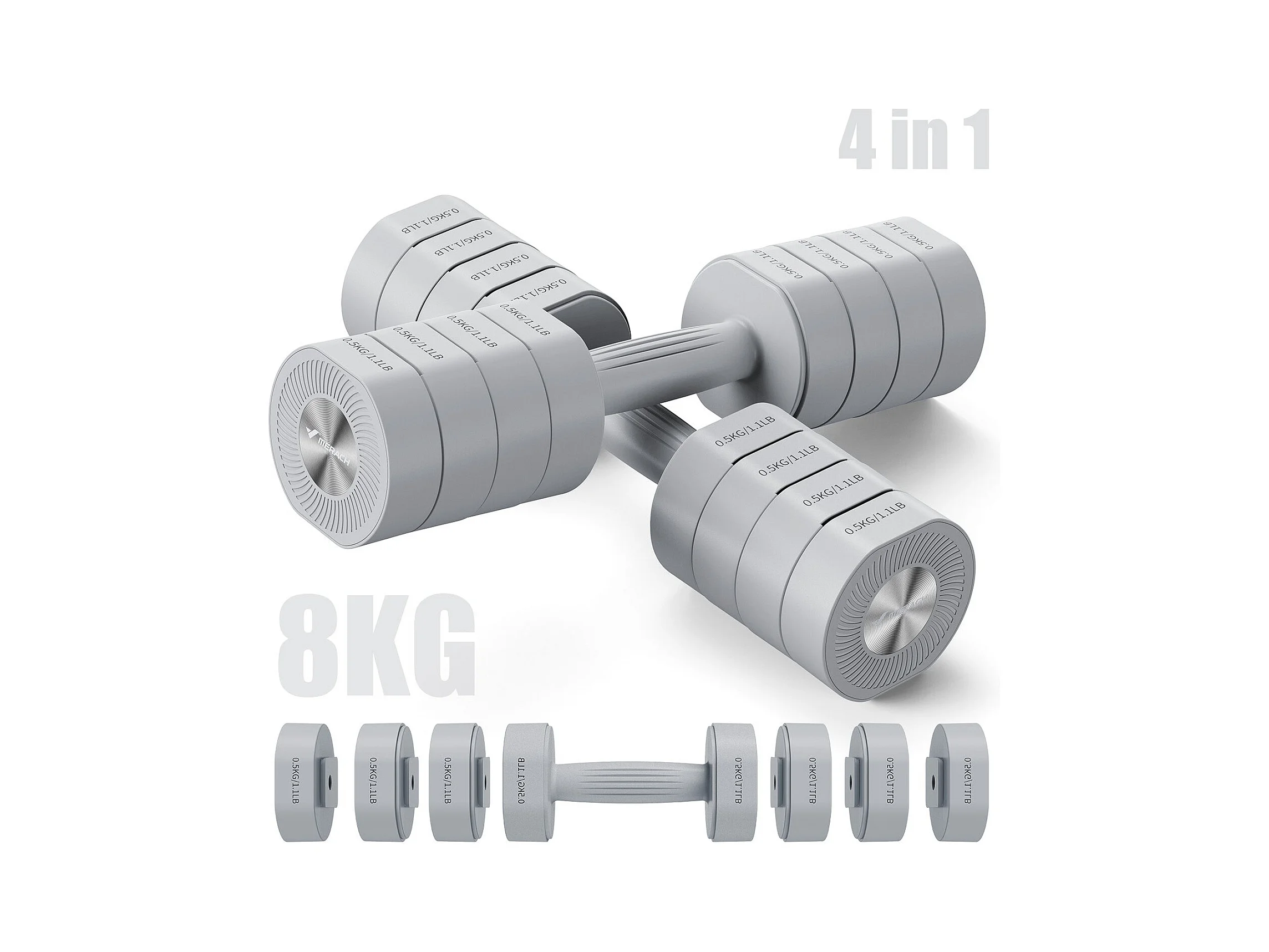 Haltère Musculation Réglable 4-en-1 - MERACH, Lot de 2 Poids de 1 à 4KG, à Domicile ou en Salle De Sport, pour Hommes et Femmes, Gris