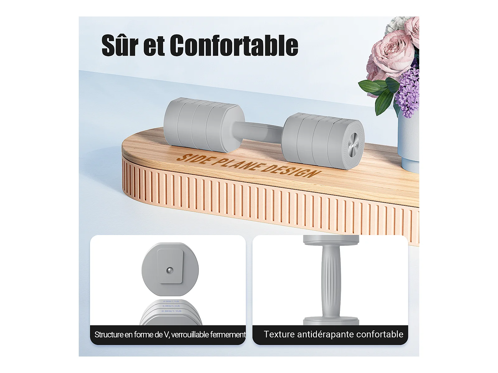 Lot de 2 haltères réglables hexagonales avec poignée antidérapante pour l'entraînement à domicile, 2 x 2.5kg gris