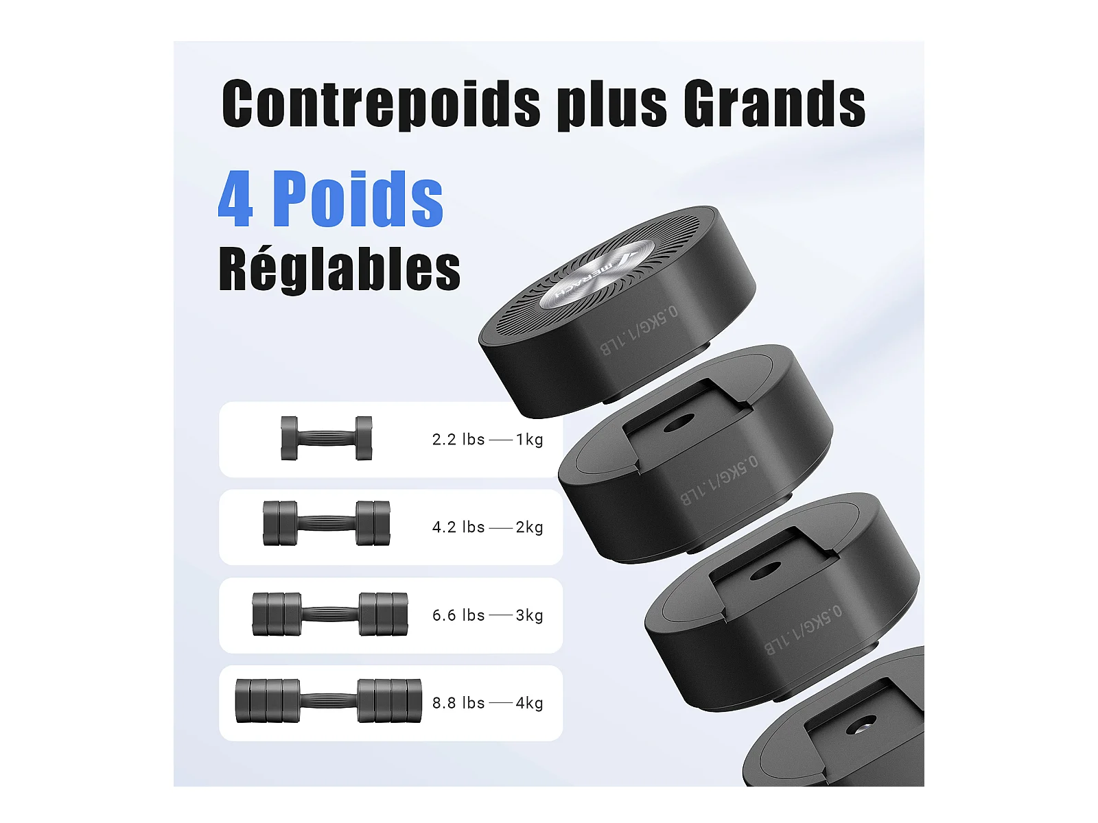 Haltère Musculation Réglable 4-en-1 - MERACH, Lot de 2 Poids de 1 à 4KG, à Domicile ou en Salle De Sport, pour Hommes et Femmes, Noir