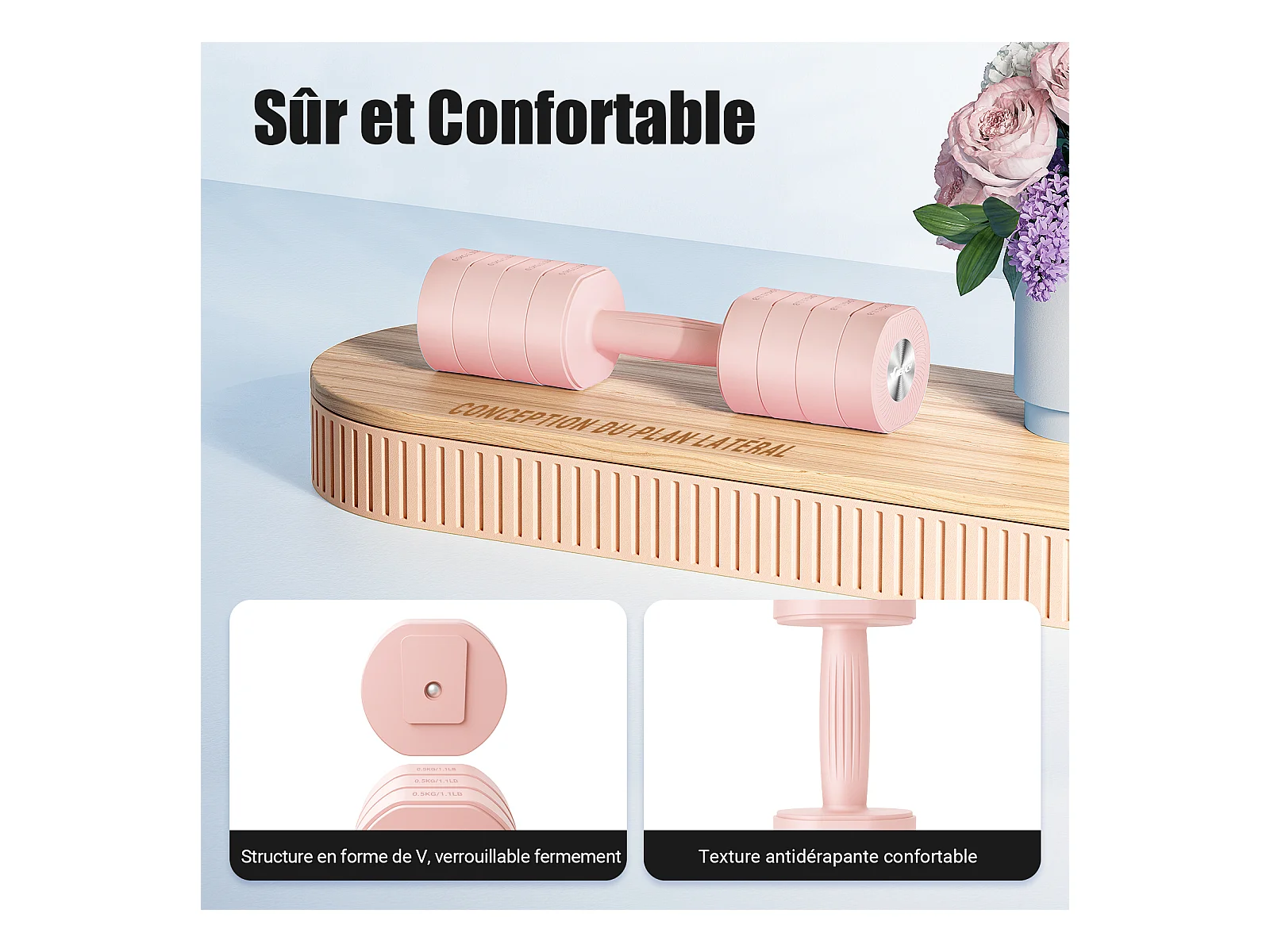 Haltère Musculation Réglable 4-en-1 - MERACH, Lot de 2 Poids de 1 à 4KG, à Domicile ou en Salle De Sport, pour Hommes et Femmes, Rose