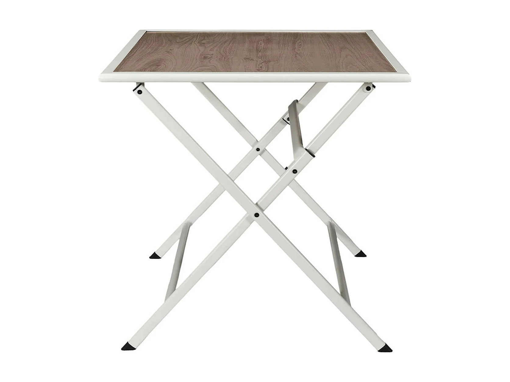 HANAE - Table Pliante de Jardin Carrée en métal et Verre Décor Imitation Bois