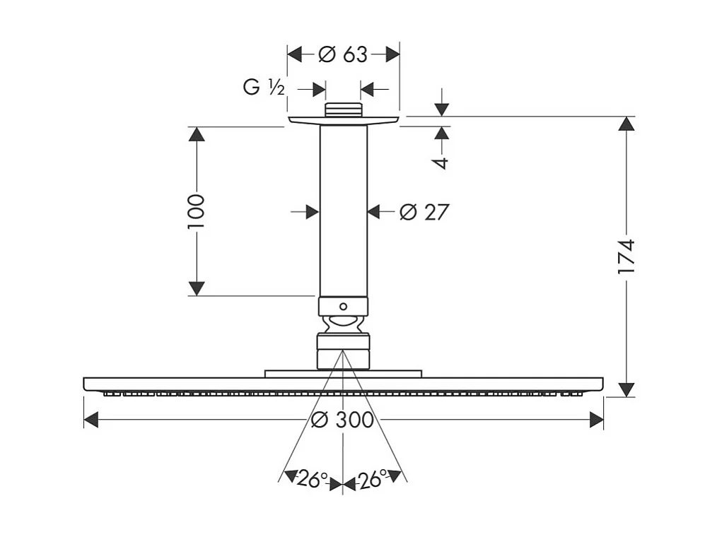 HANSGROHE Douche de tête Raindance S 300 1 jet avec raccord plafond chromé