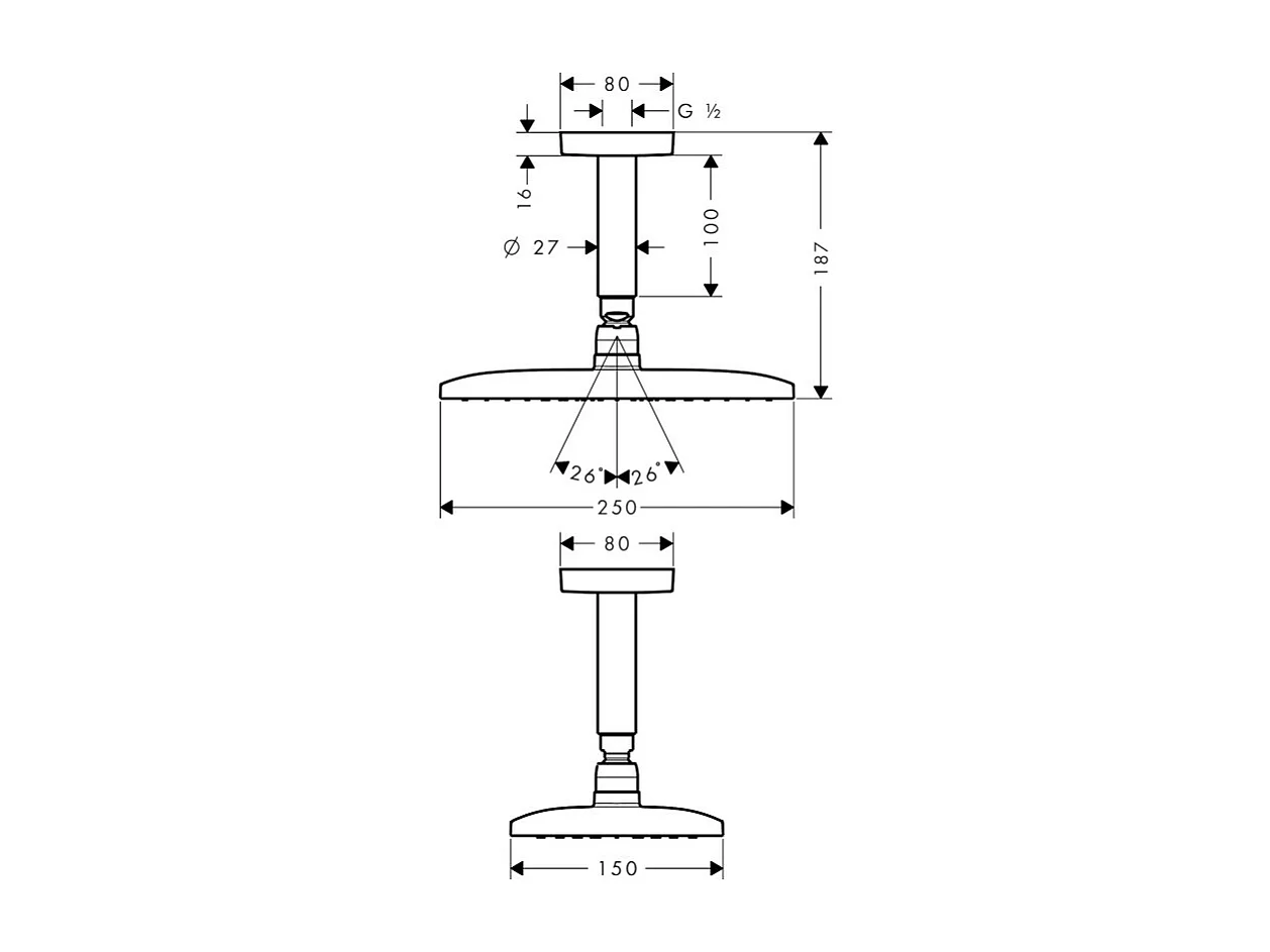 HANSGROHE Lot douche de tête Raindance E 240 + façade + corps encastré + douchette à main + flexible + coude de raccordement