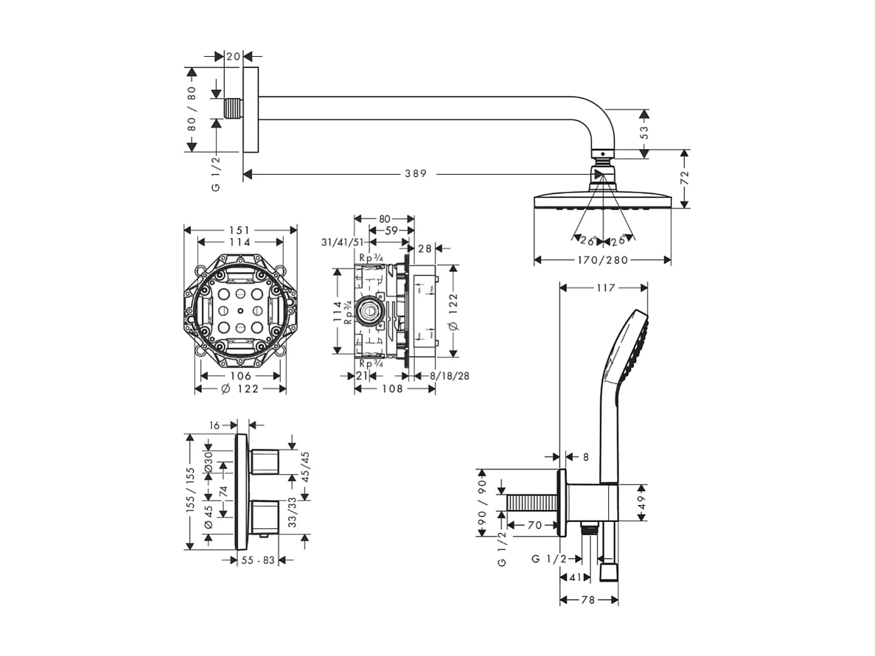 HANSGROHE Pack encastré avec mitigeur thermostatique Ecostat E chromé