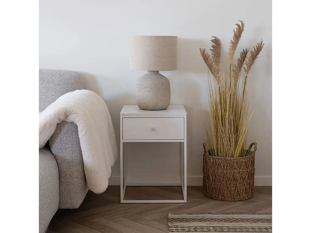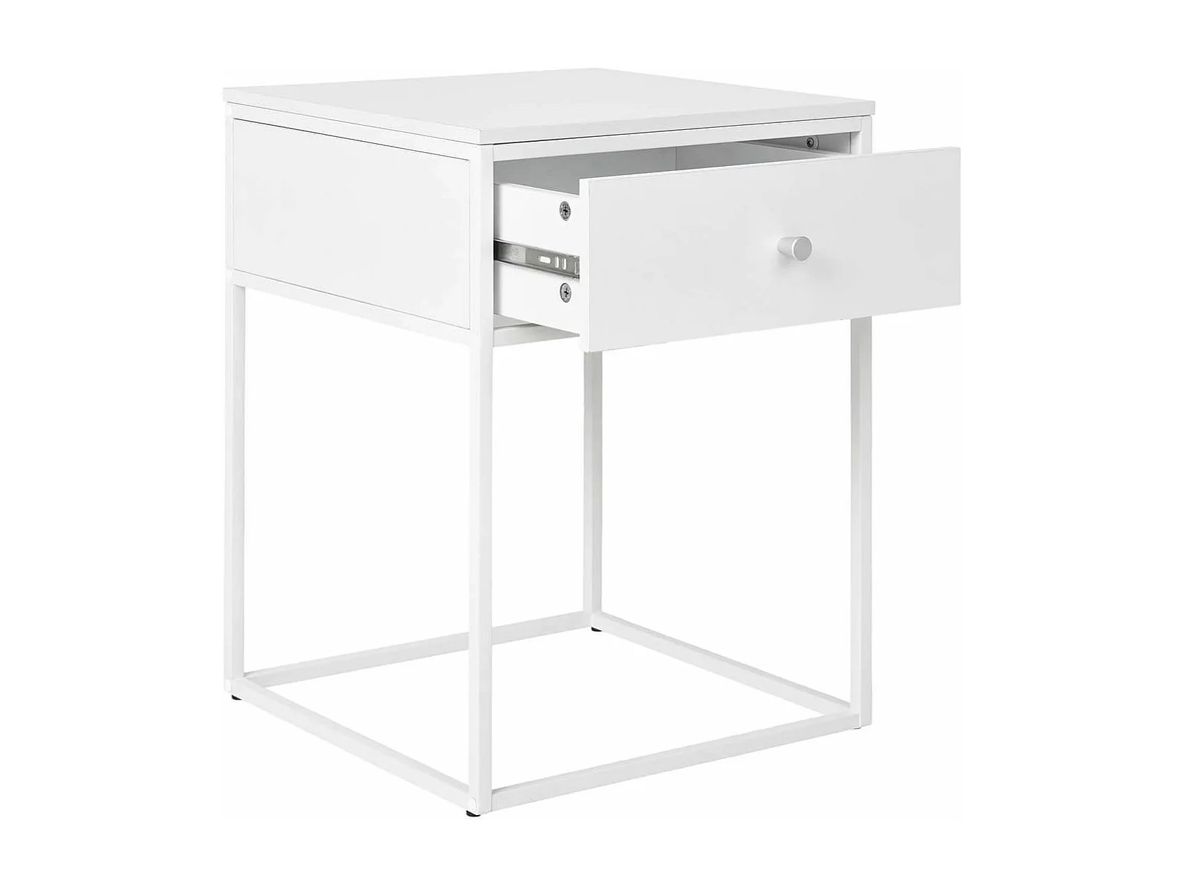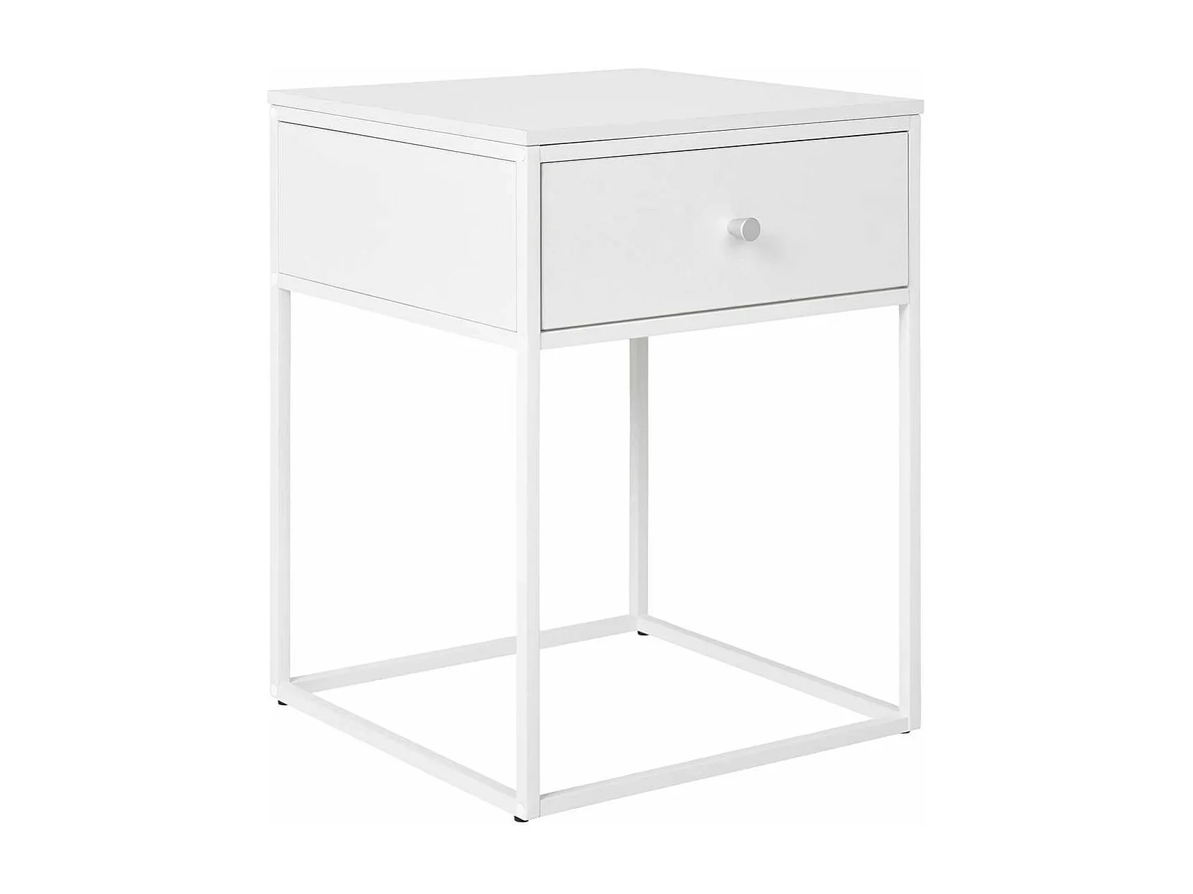 HARALD - Bout de Canapé 1 Tiroir Carré Acier et Plateau Aspect Bois Blanc