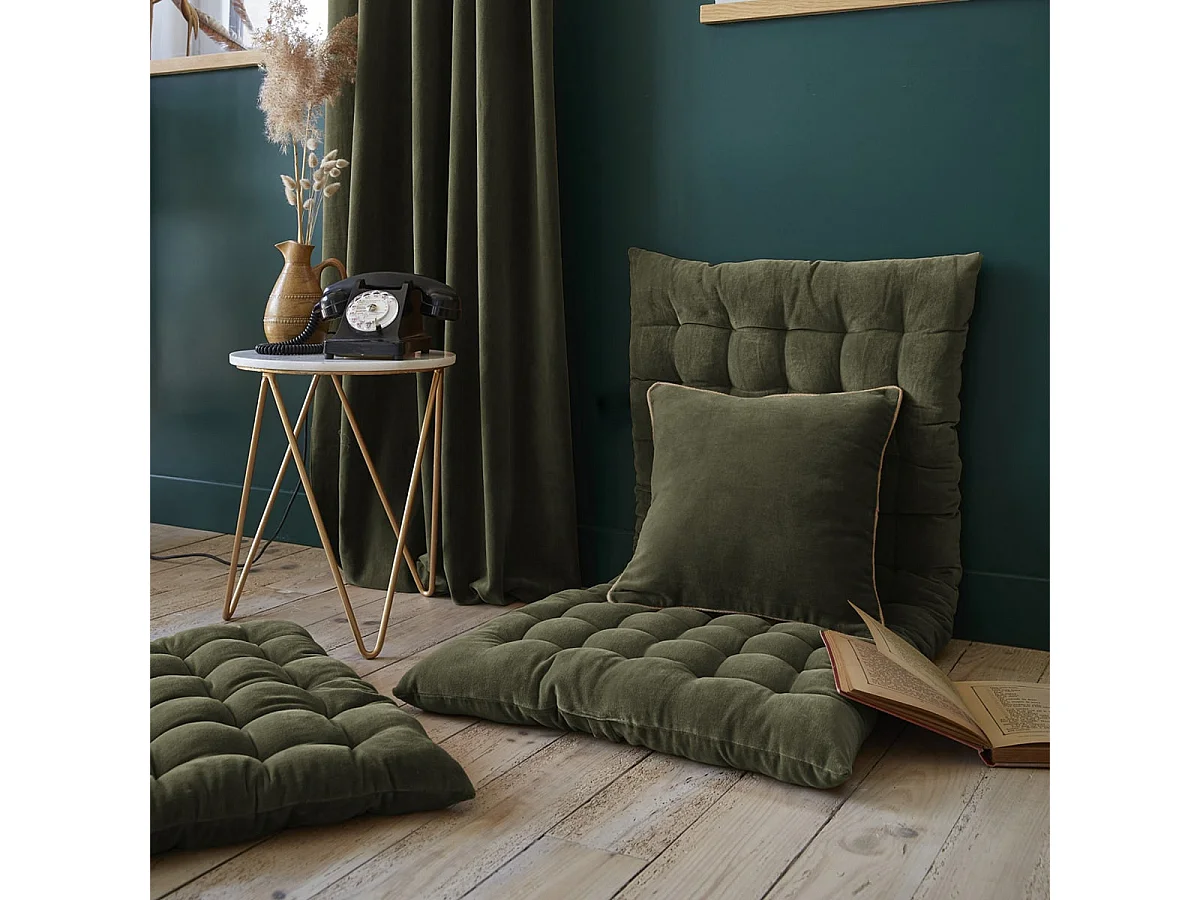 Coussin de Sol en Coton Vert Kaki 40 x 40 cm