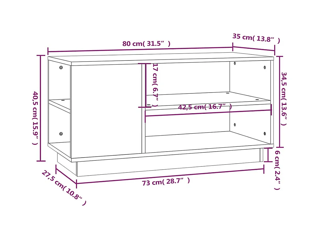 Rorik Meuble TV Marron miel 80x34x35 cm Bois de pin massif