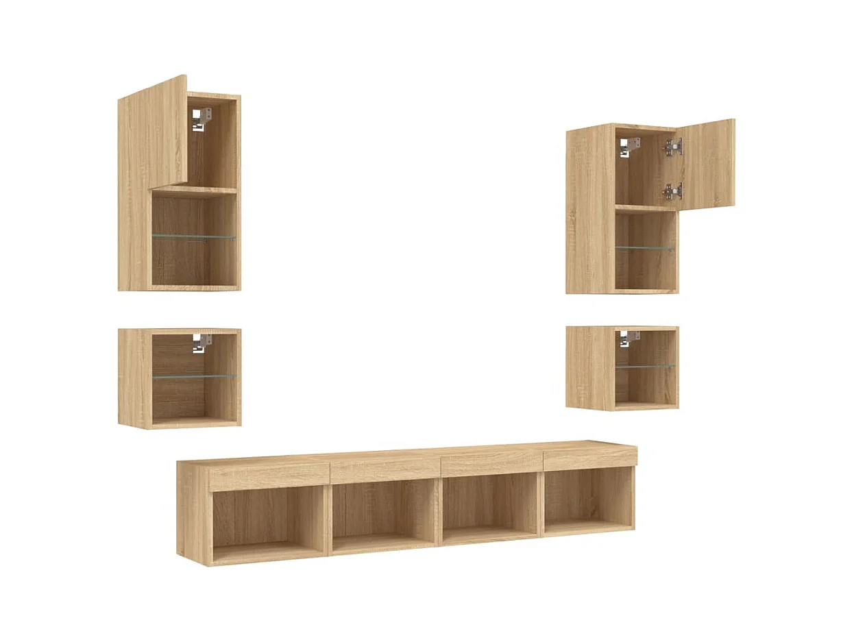Hässleholm Unités murales TV avec LED 8 pcs chêne sonoma bois d'ingénierie