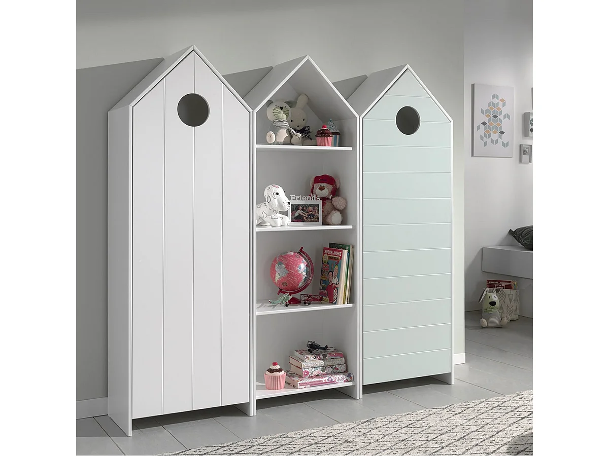 HAVRE - Pack Bibliothèque + 2 Armoires Blanche et Verte