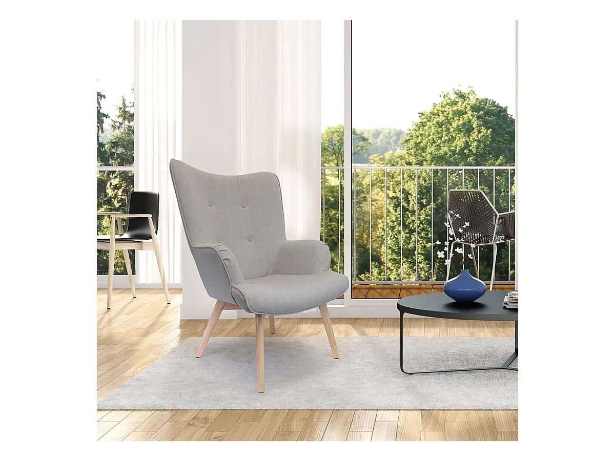 HAYNA - Fauteuil Gris et Piétement Naturel