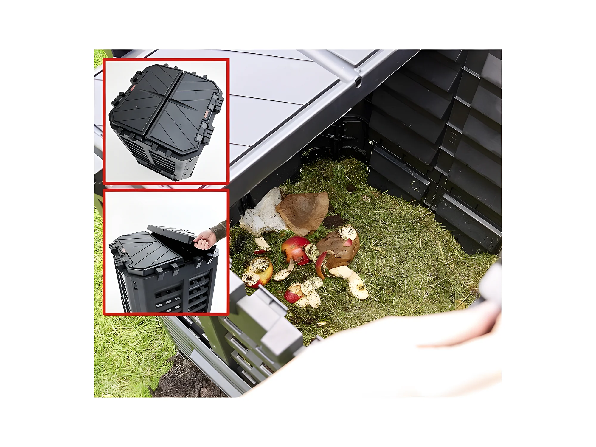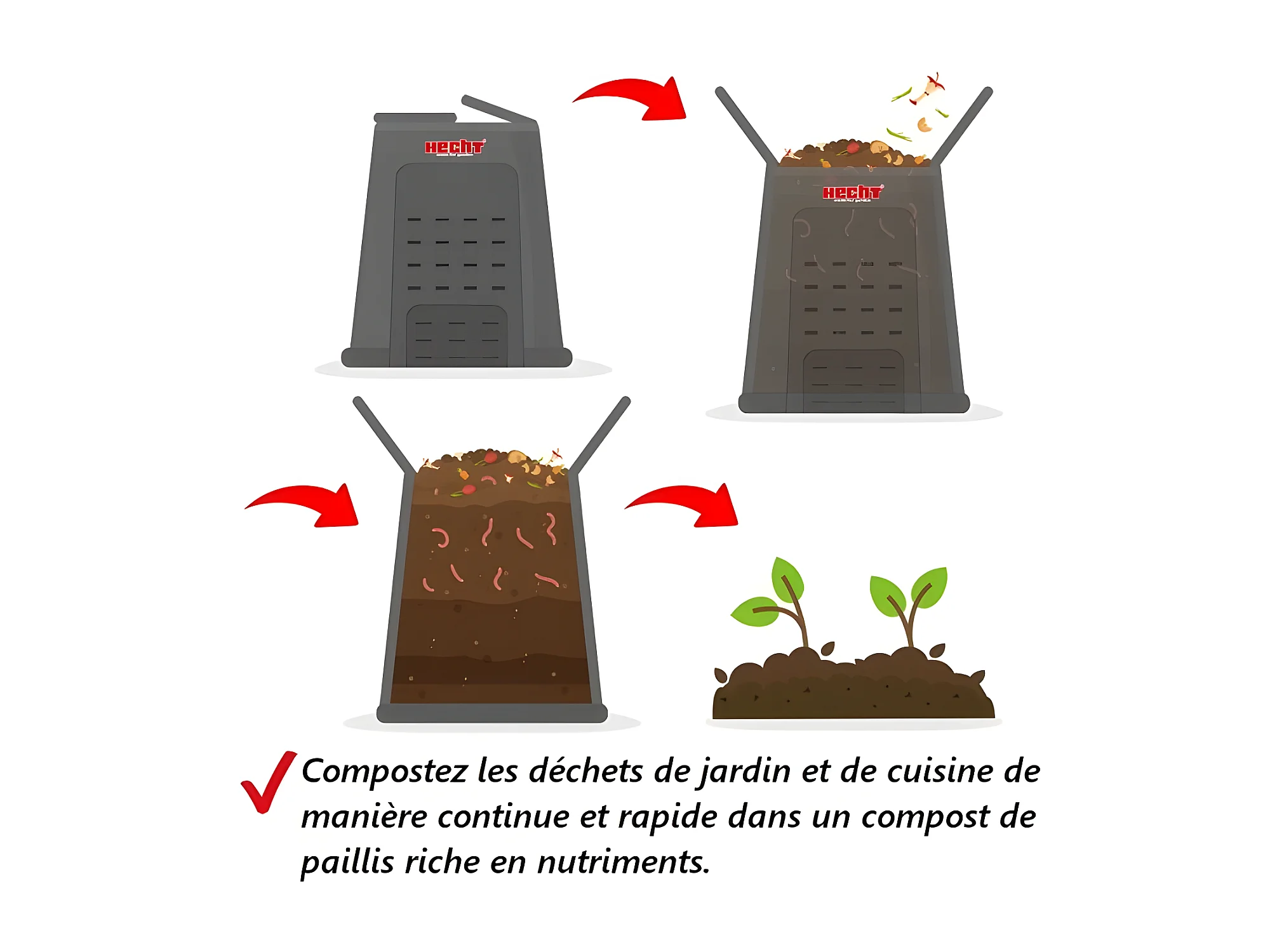 Hecht 3060 Composteur pour jardin 360L déchets de pelouse Boite de compostage 69 x 69 x 84 cm