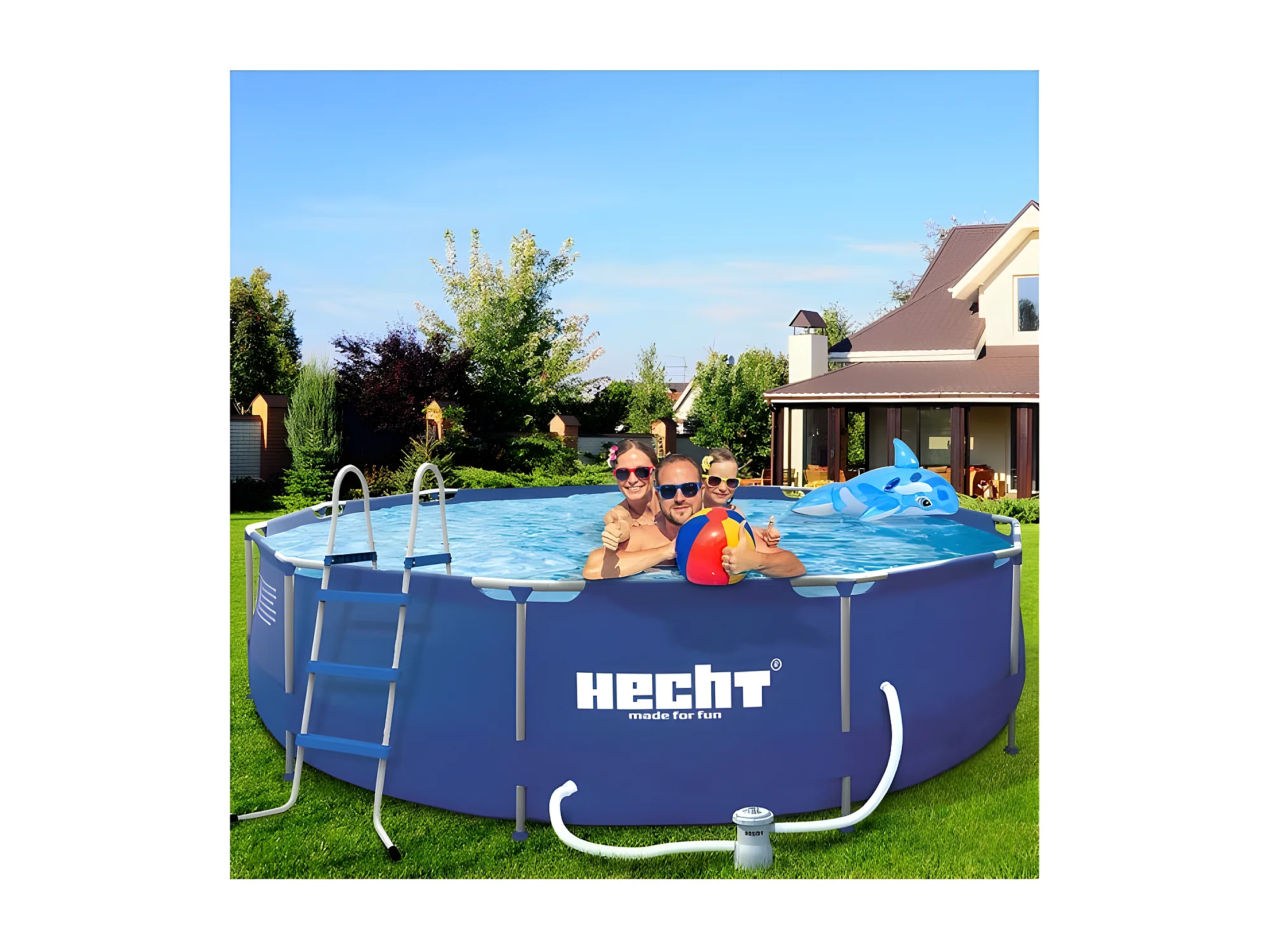 Hecht 3690 BLUESEA Grande Piscine tubulaire hors sol ronde 360x76cm (diamètre X profondeur) de haute qualité