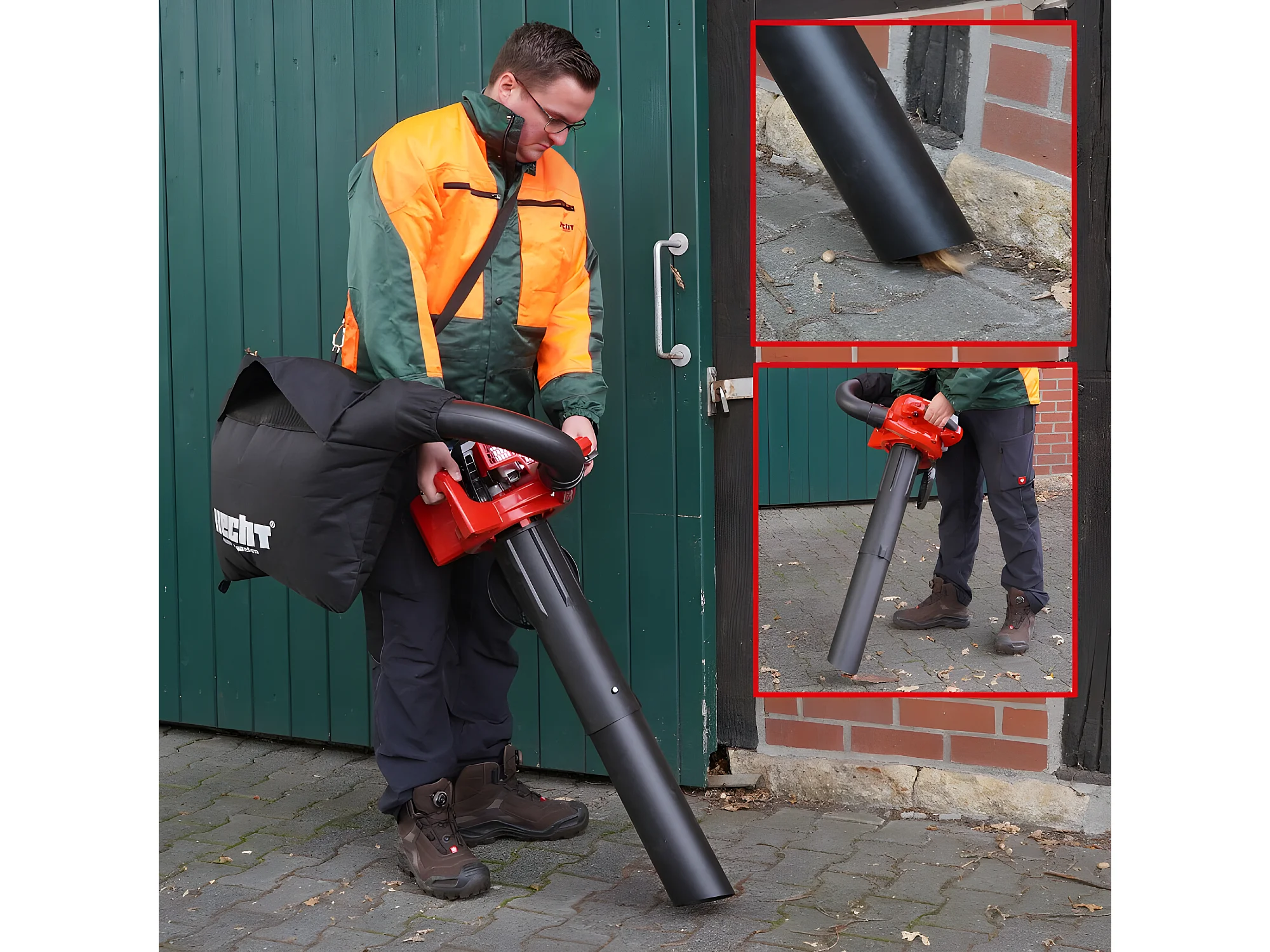 Hecht 9280 Aspirateur souffleur broyeur essence 3en1 252km/h 50 l moteur à deux temps