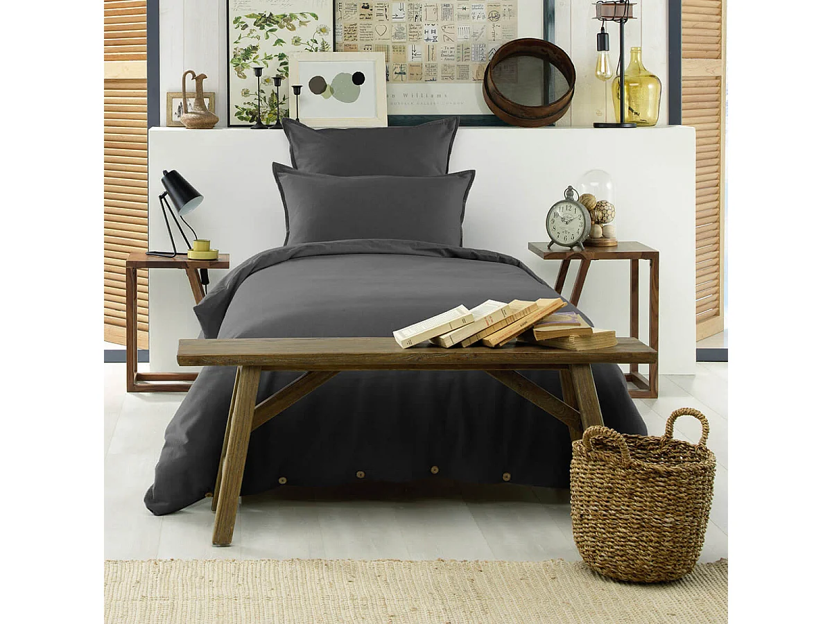 Parure de lit coton percale Anthracite 240x220 - SOMEO - MORPHEE