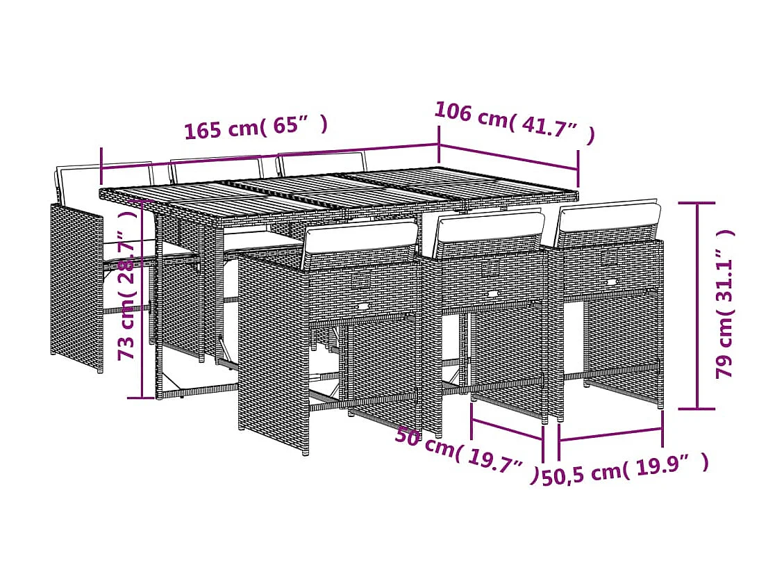Heeswijk-Dinther Ensemble à manger de jardin et coussins 7 pcs gris rotin