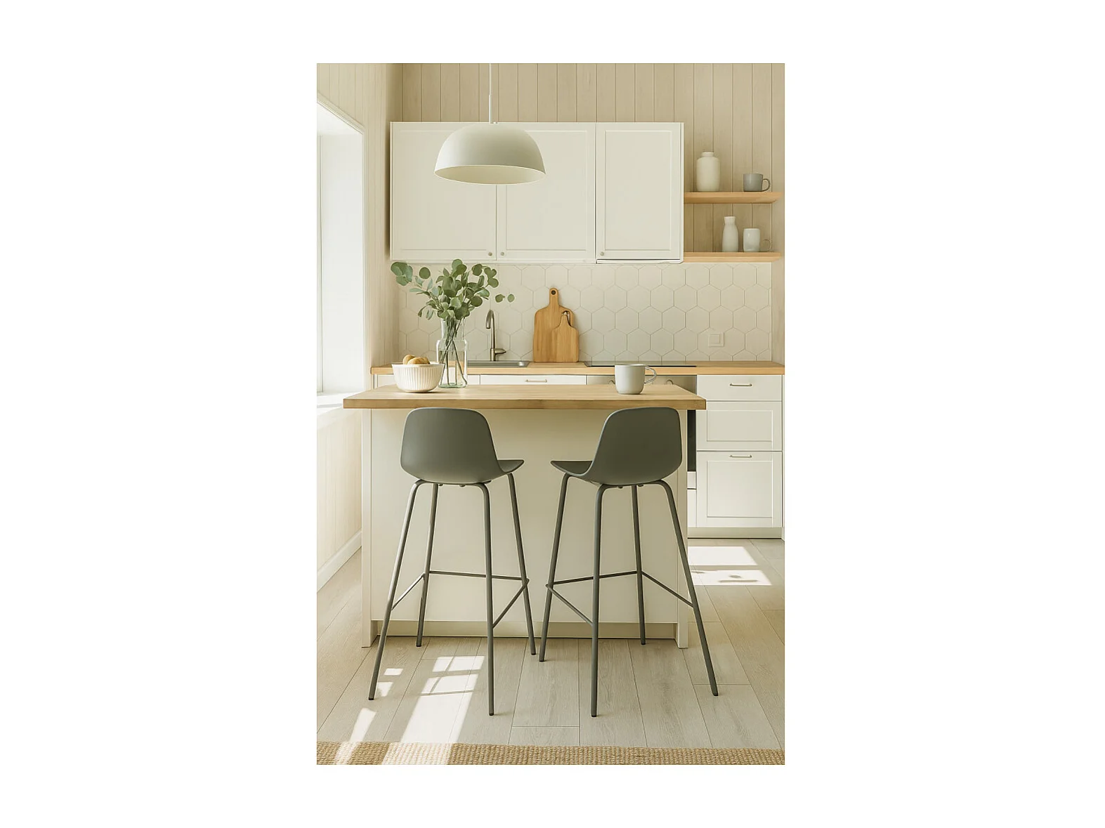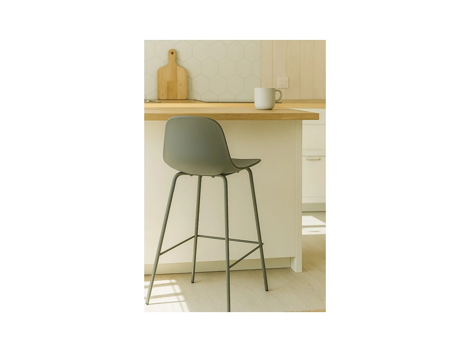 Hel - Lot de 2 chaises de bar en plastique et métal H67,5cm - Vert kaki