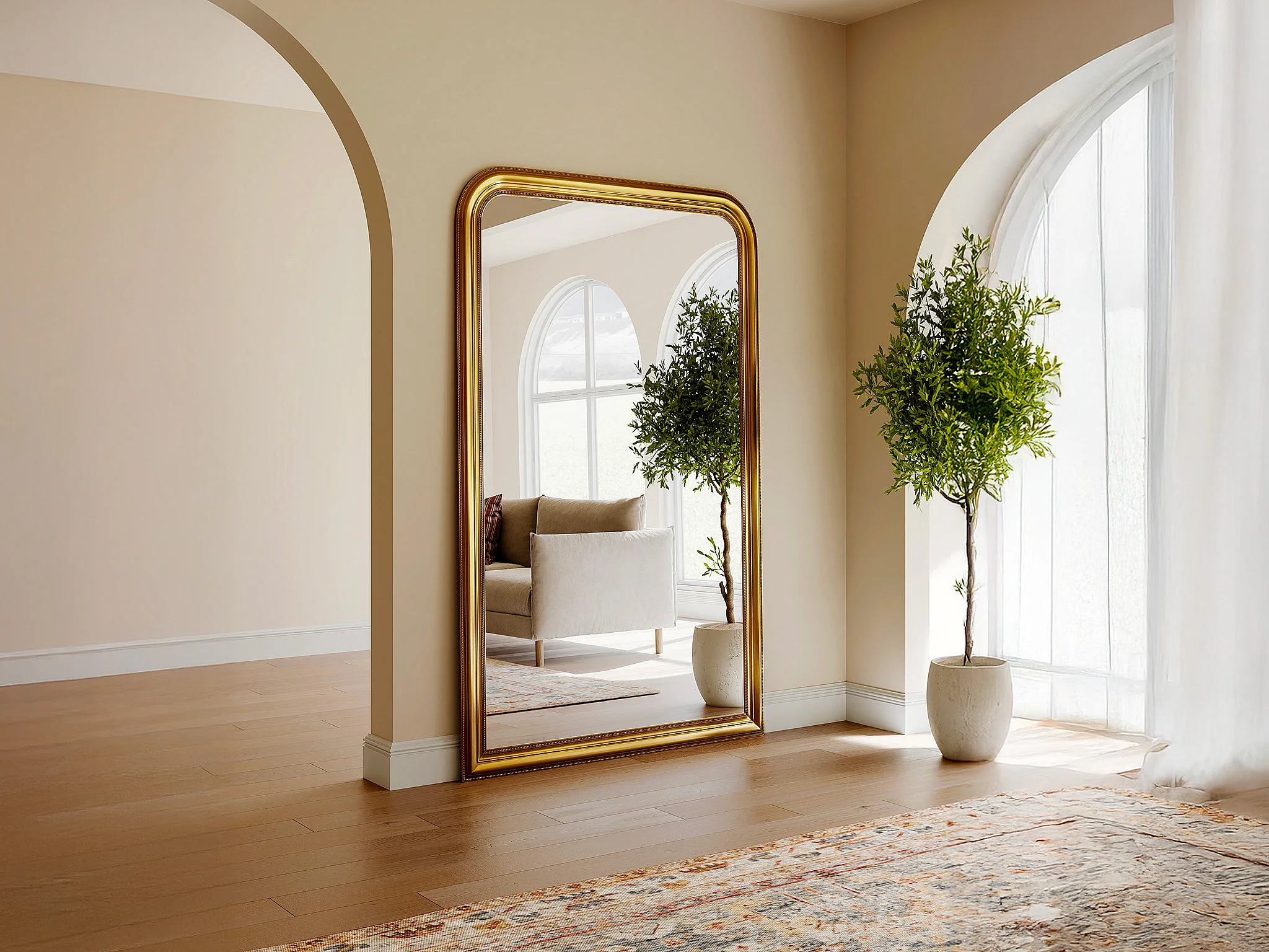 Grand miroir en bois de paulownia - L. 120 x H.190 cm - Doré - MERRY