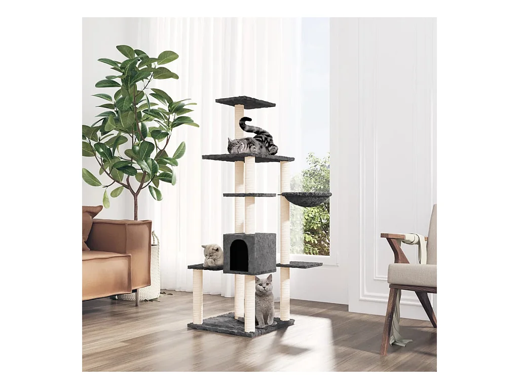 Alain-Paul Arbre à chat avec griffoirs en sisal Gris foncé 174 cm