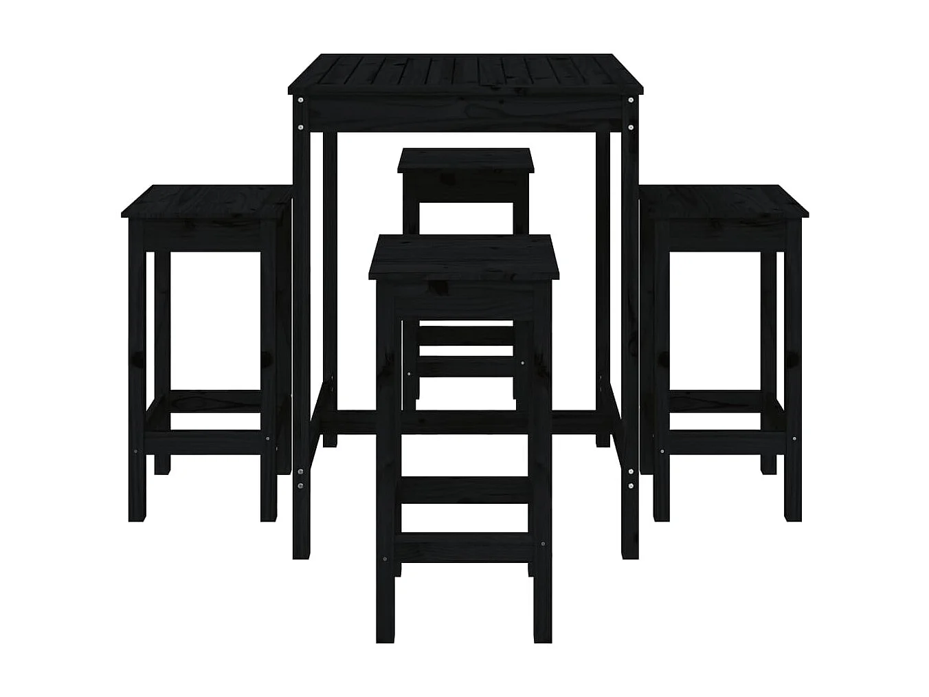 Hendrin Ensemble de bar de jardin 5 pcs noir bois de pin massif